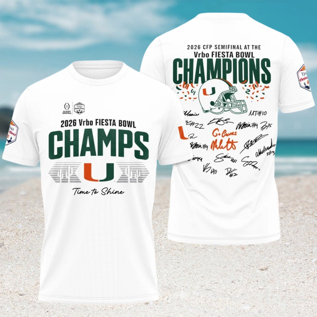 ▶️ About 2026 Vrbo Fiesta Bowl Champions Miami Hurricanes Signed T Shirt – 3D T-Shirt
