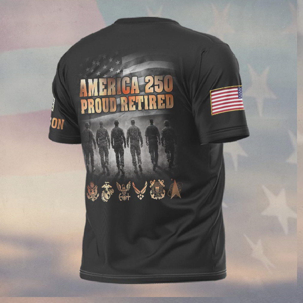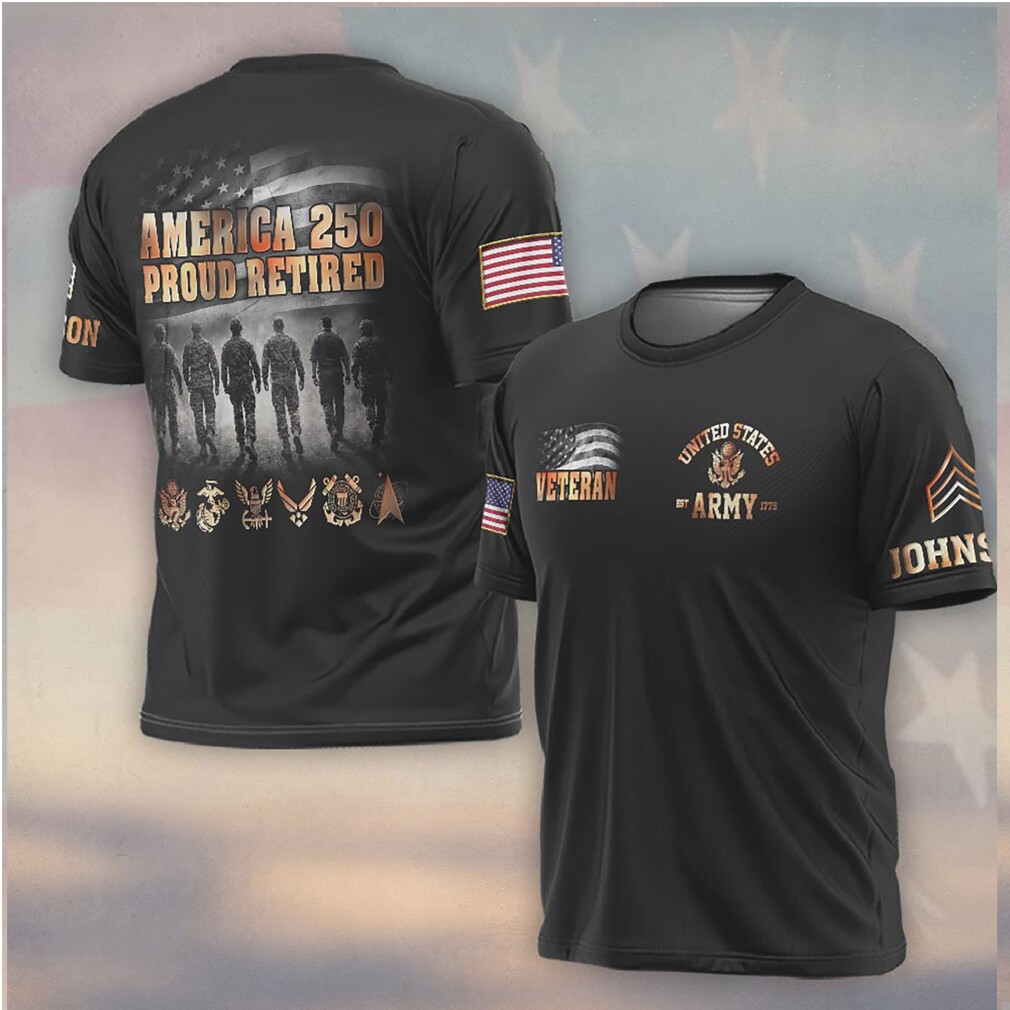 ▶️ About America 250 Proud Retired Veteran All Branches Military Silhouette T Shirt – 3D T-Shirt