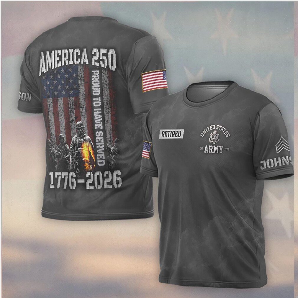 ▶️ About America 250 Retired Army Proud To Have Served 1776 2026 Shirt – 3D T-Shirt
