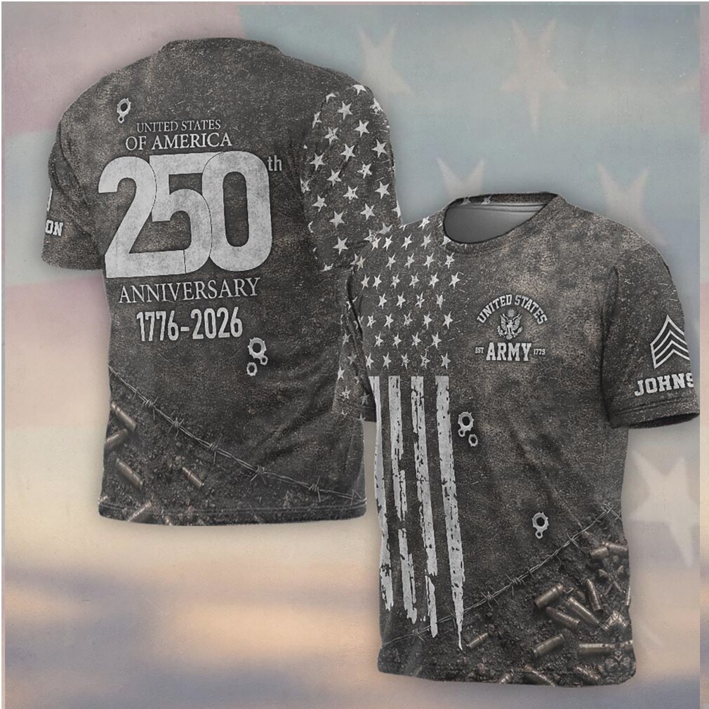 ▶️ About America 250th Anniversary 1776 2026 US Army Battlefield Grunge T Shirt – 3D T-Shirt