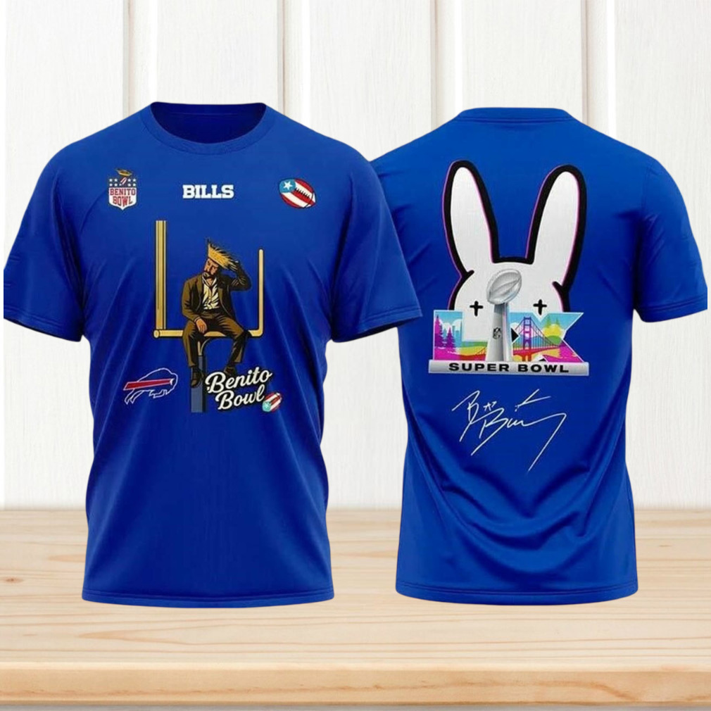 ()Bad Bunny Benito Bowl Buffalo Bills Blue Graphic Tee Super Bowl LX Fan Apparel Shirt, V-neck, Sweater Hoodie and Long Sleeve tee