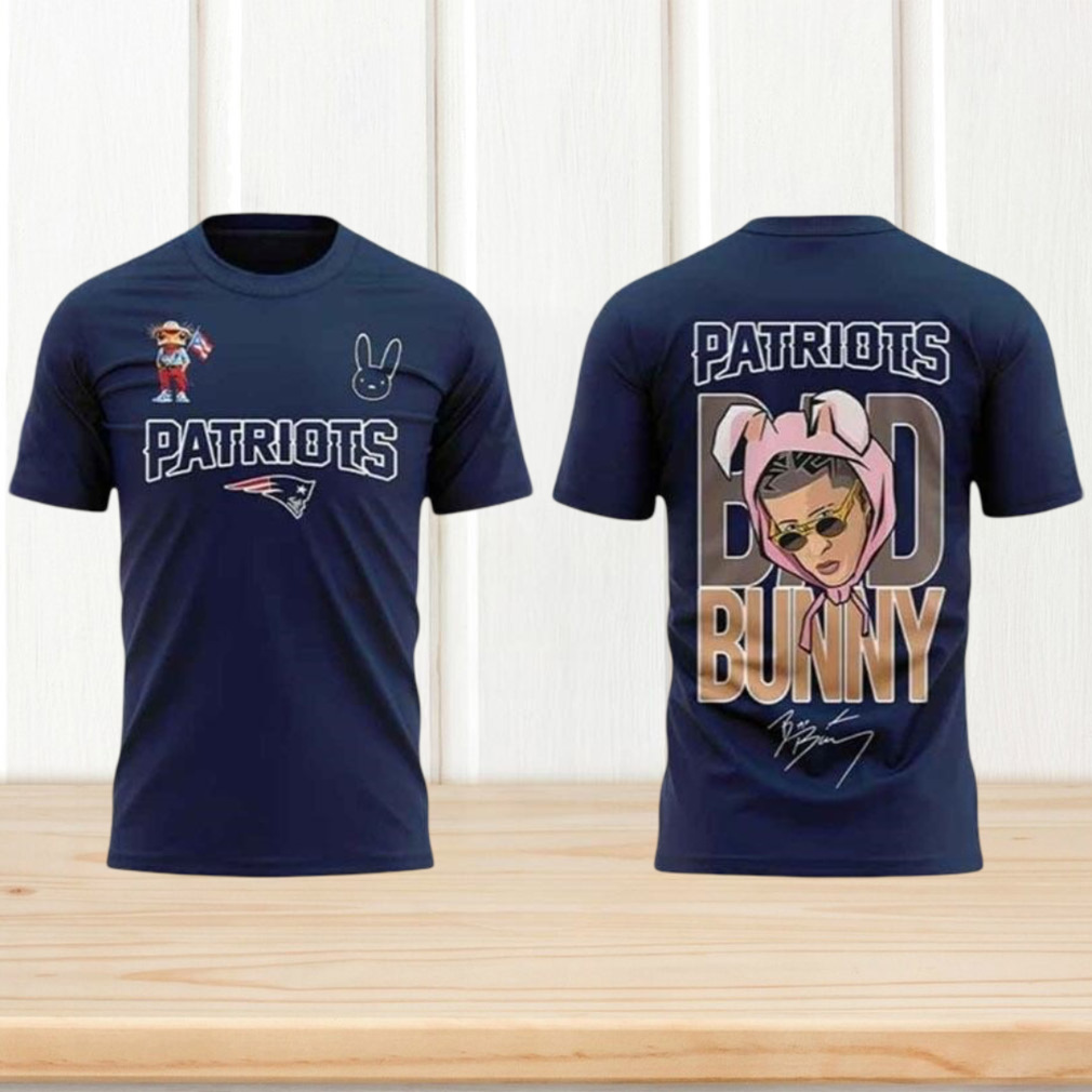 ()Bad Bunny New England Patriots Navy Blue Graphic Unique Artist Collaboration Apparel T Shirt, V-neck, Sweater Hoodie and Long Sleeve tee