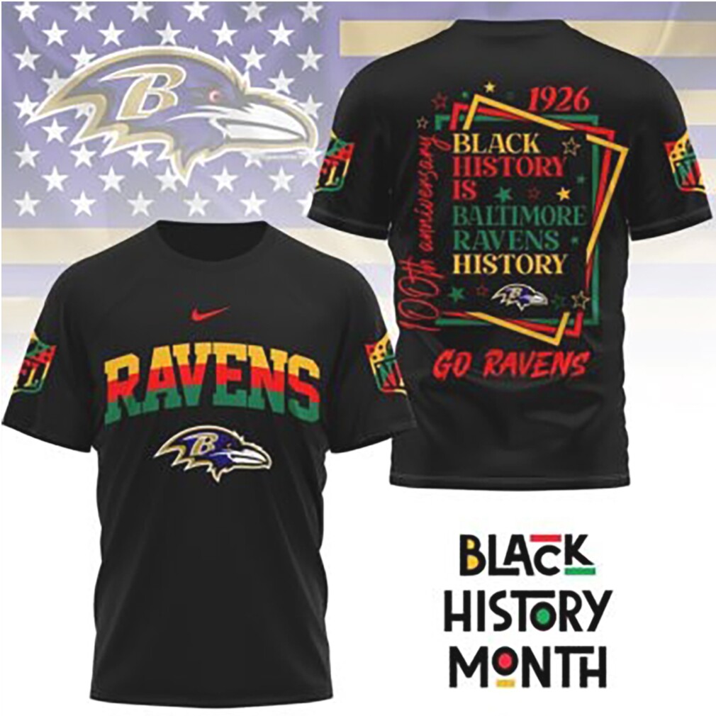 ▶️ About Baltimore Ravens Black History Month 1926 Anniversary NFL Football Fan T Shirt – 3D T-Shirt