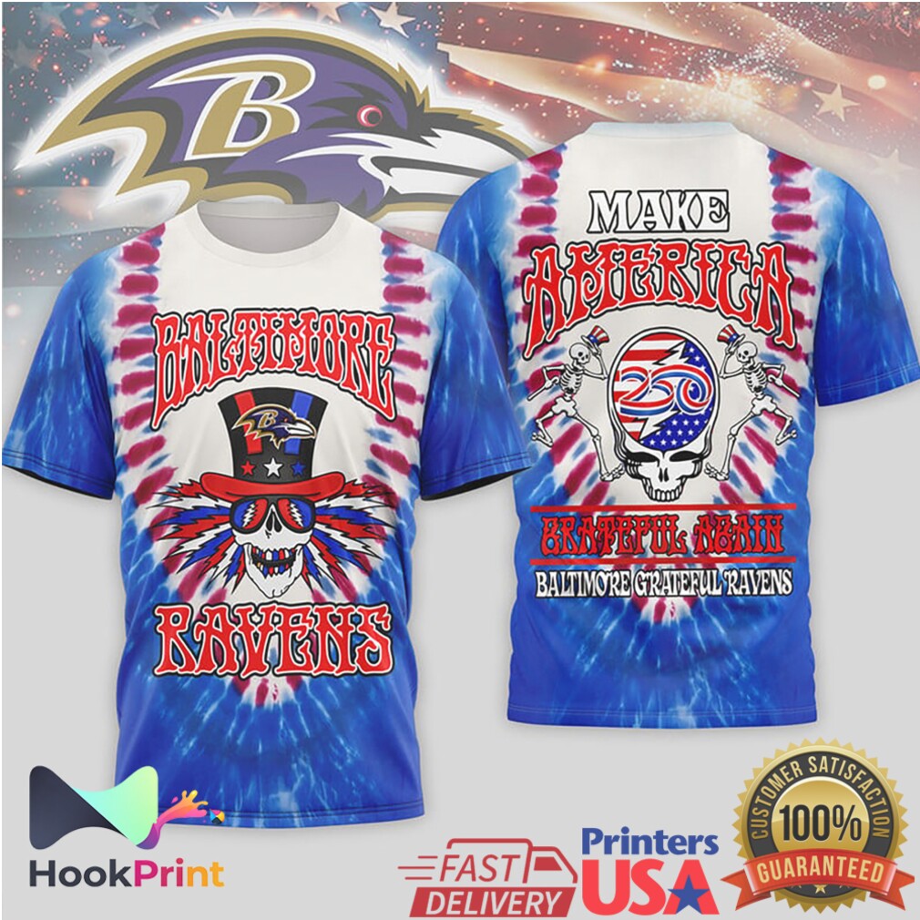 ▶️ About Baltimore Ravens Grateful Dead Tie Dye “Make America Grateful Again” T Shirt – 3D T-Shirt