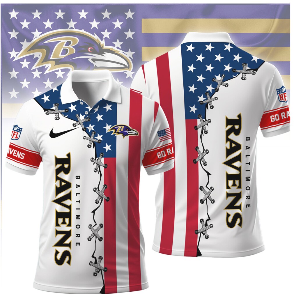 ▶️ About Baltimore Ravens NFL American Flag Heritage Lace Up Polo Shirt – 3D T-Shirt