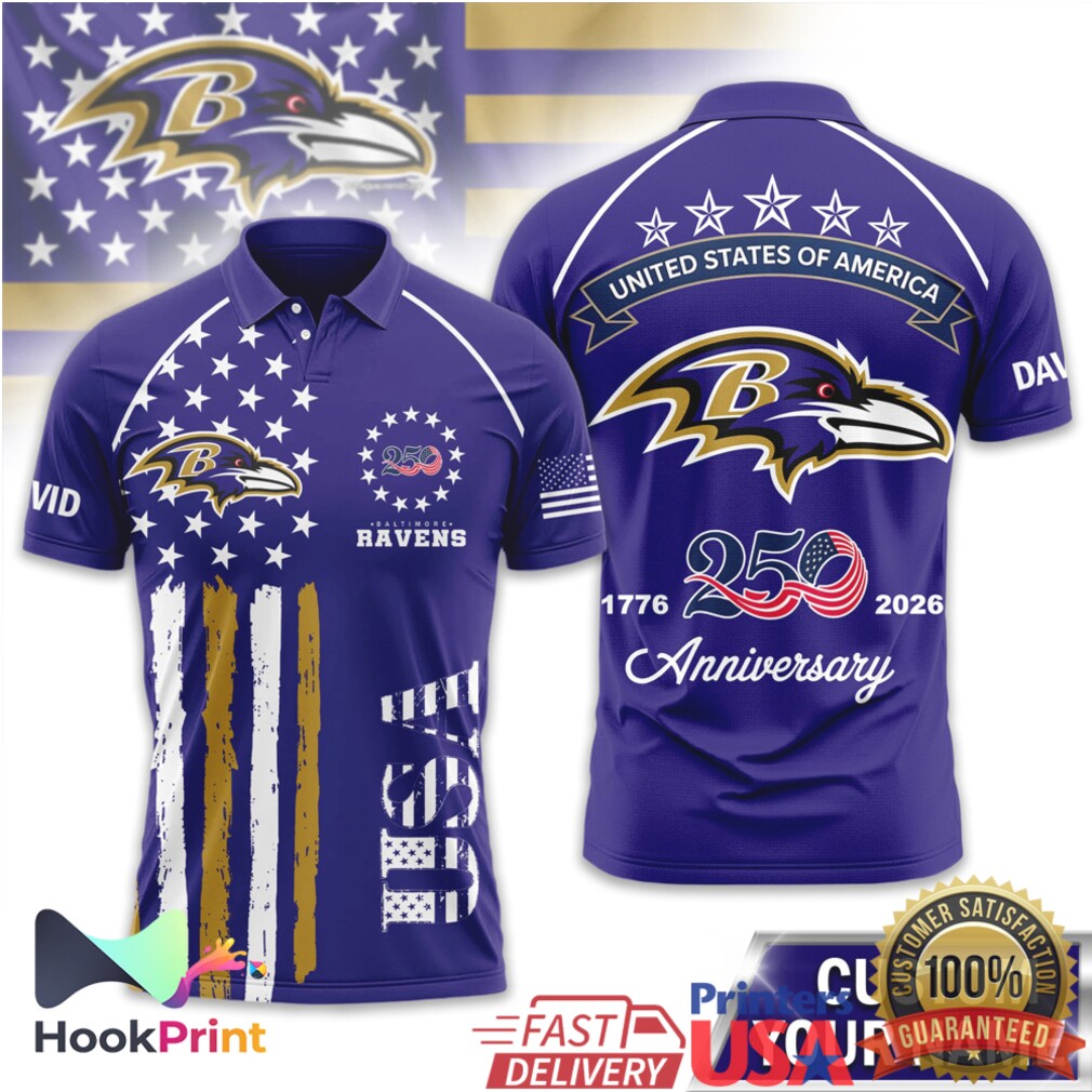 ▶️ About Baltimore Ravens USA 250th Anniversary 1776 2026 Custom Name Polo Shirt – 3D T-Shirt
