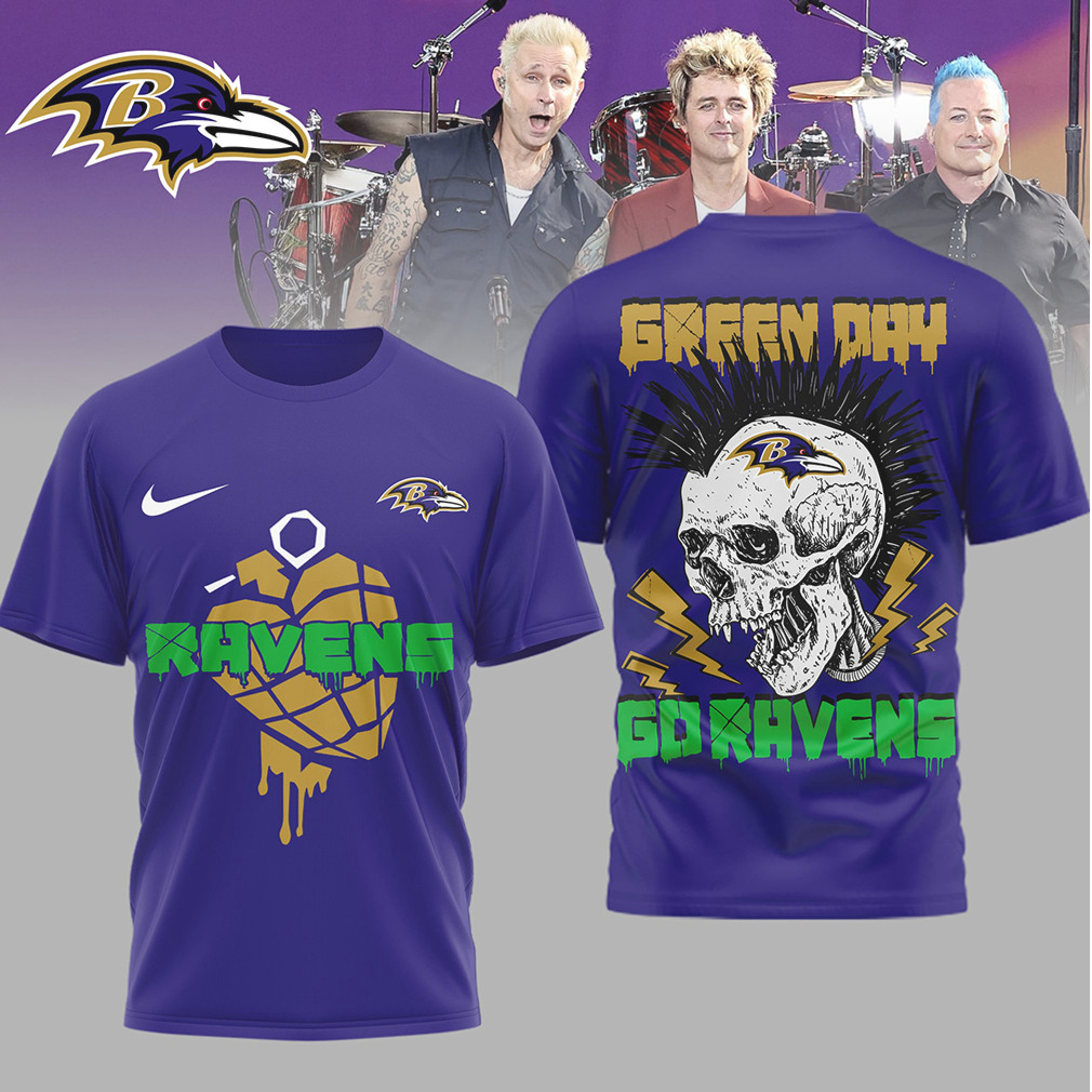 ()▶️ About Baltimore Ravens x Green Day Punk Skull Mohawk Graphic Tee – 3D T-Shirt