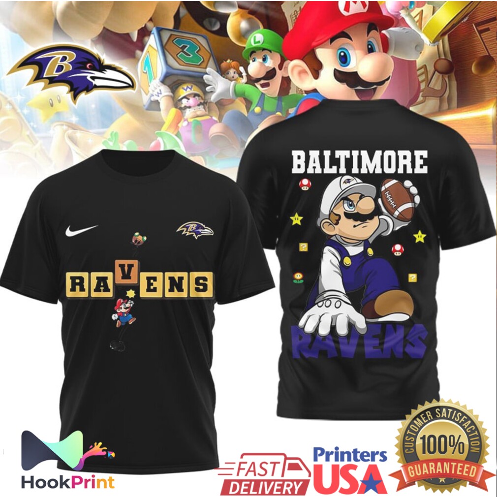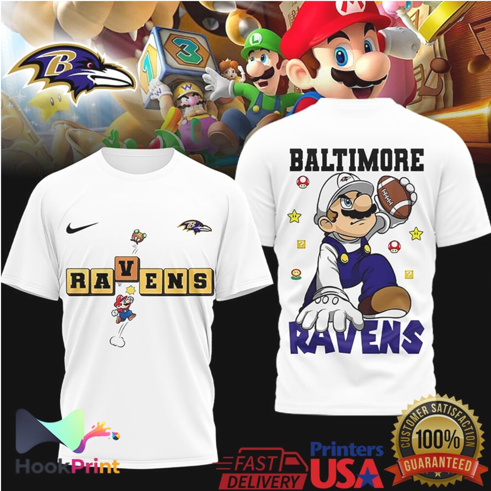 ▶️ About Baltimore Ravens x Super Mario Bros Level Up Football Fan Shirt – 3D T-Shirt