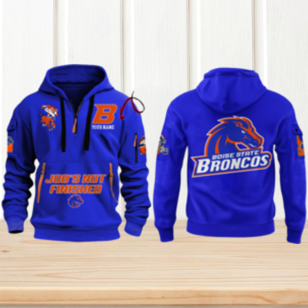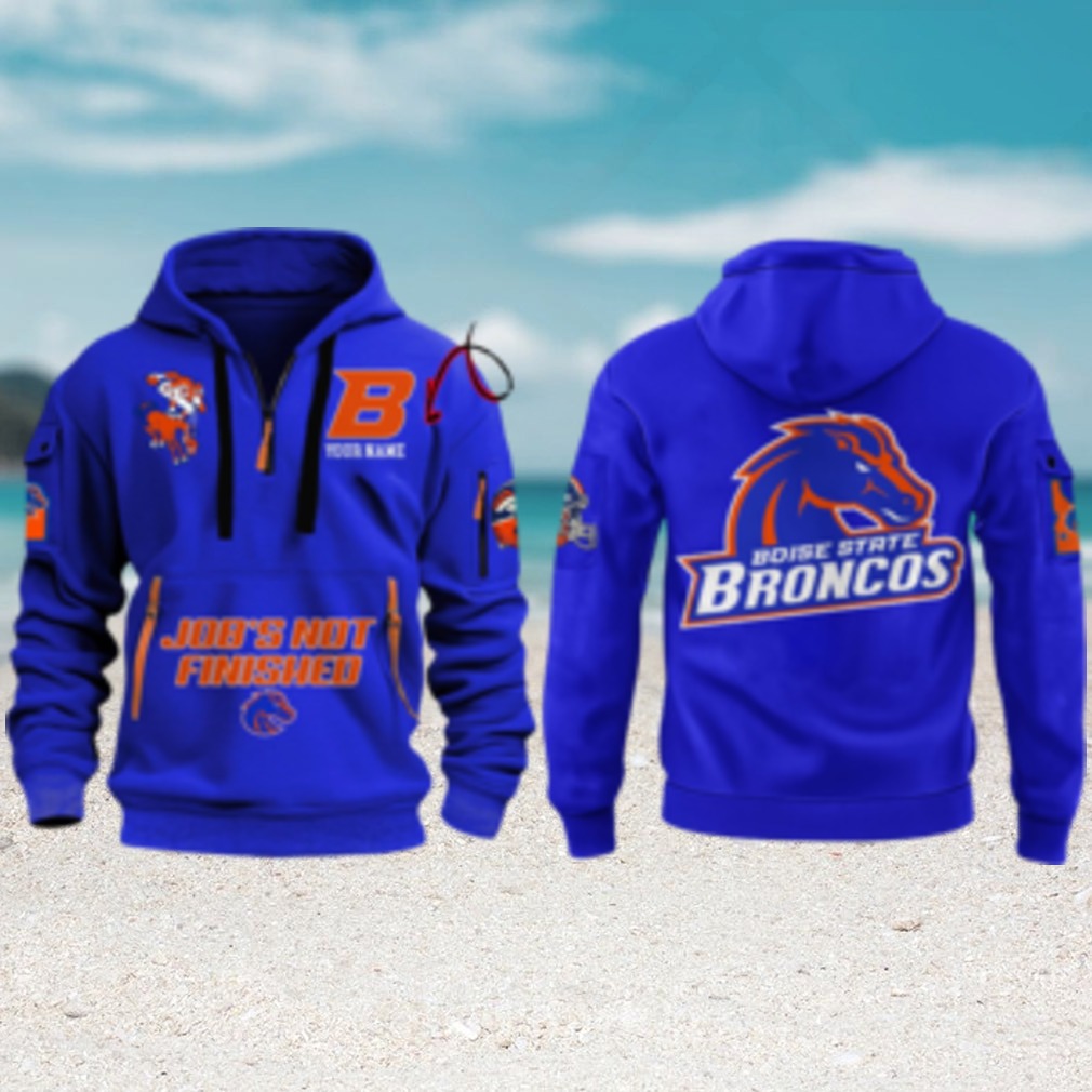 Boise State Broncos Job is Not Finished Custom Name Blue Hoodie