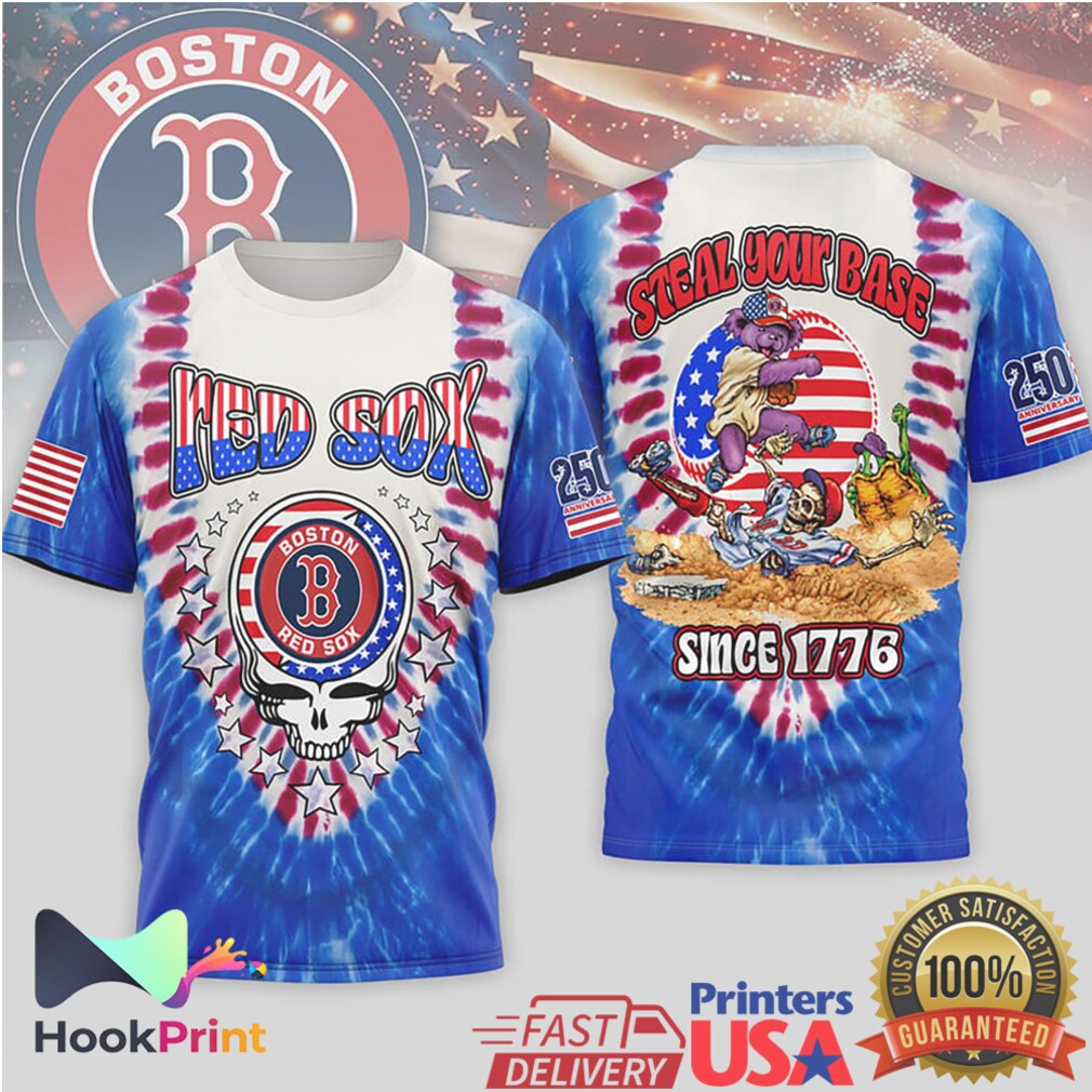 ▶️ About Boston Red Sox Grateful Dead Steal Your Base USA Patriotic Tie Dye Shirt – 3D T-Shirt