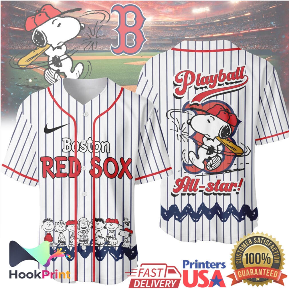 ▶️ About Boston Red Sox x Peanuts Snoopy Playball Baseball Jersey – 3D T-Shirt