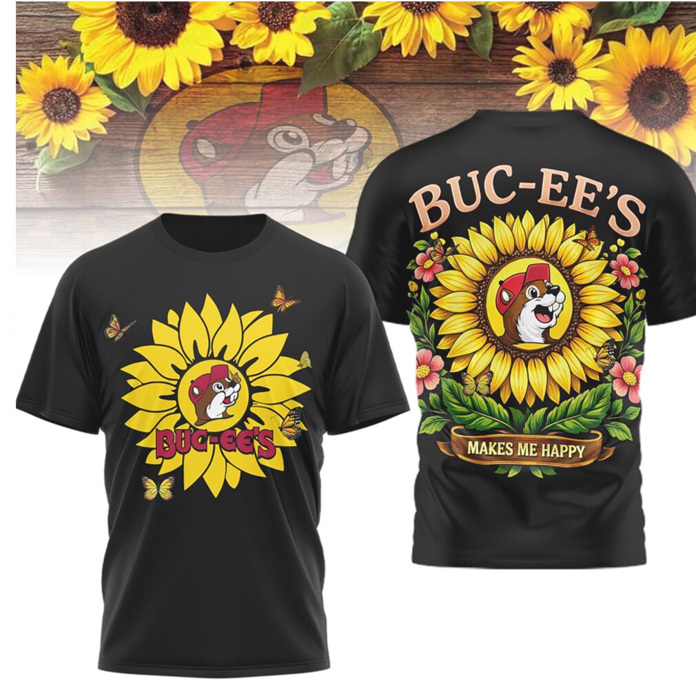 ▶️ About Buc ee's Sunflower Makes Me Happy Beaver Logo Merch Shirt – 3D T-Shirt