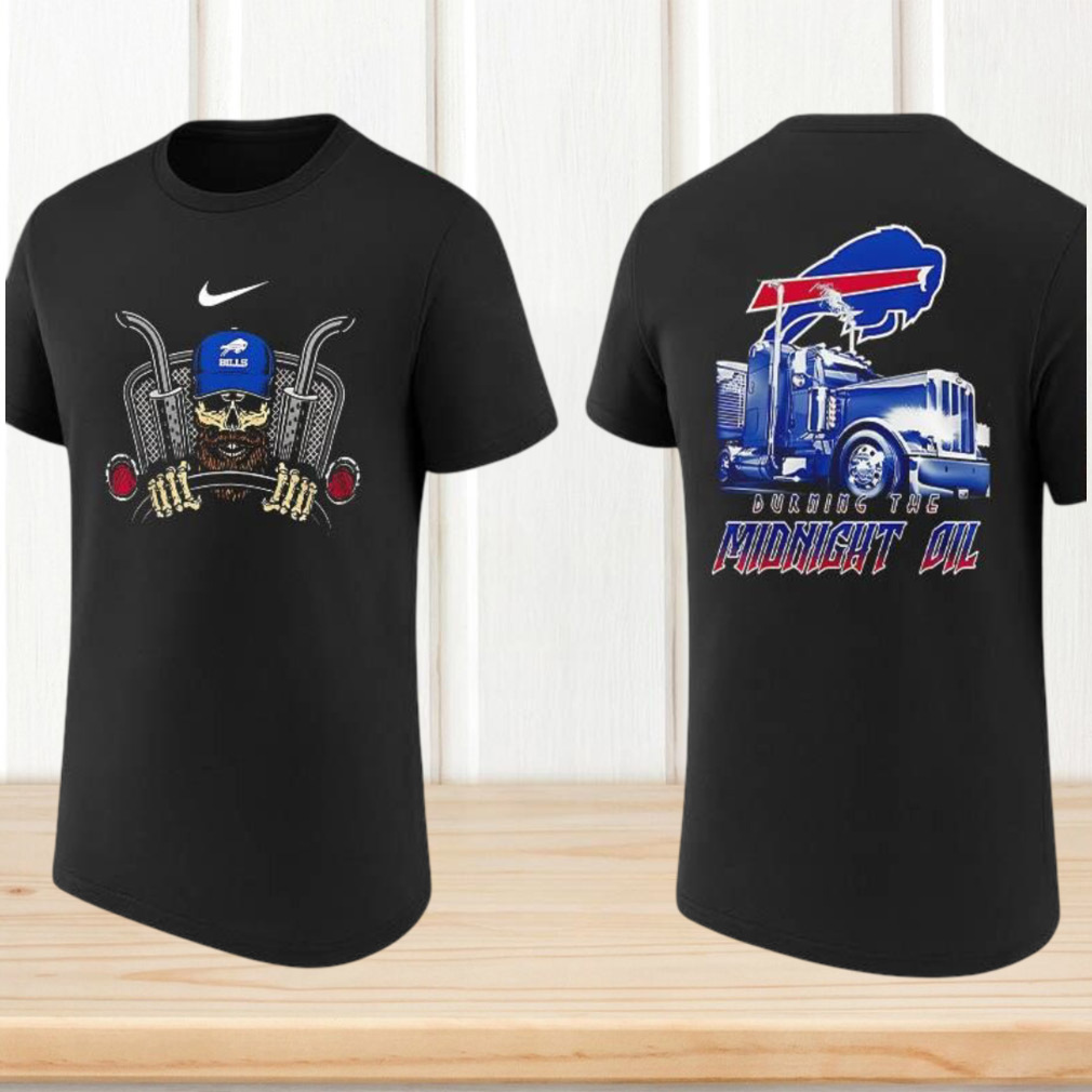 ()Buffalo Bills Burning The Midnight Oil Trucker Skull Football Fan T Shirt, V-neck, Sweater Hoodie and Long Sleeve tee