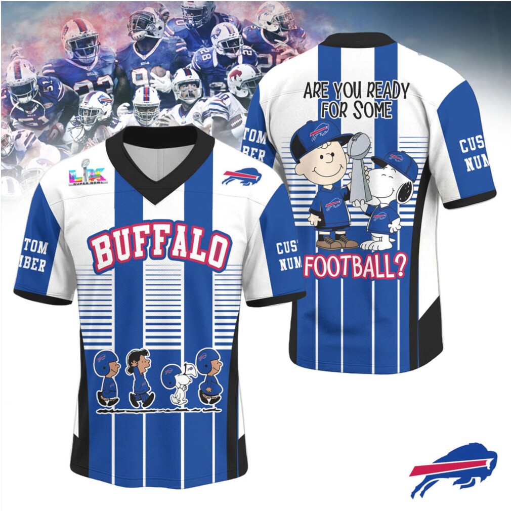 ▶️ About Buffalo Bills Official Super Bowl x Peanut V neck Baseball Jersey – 3D T-Shirt
