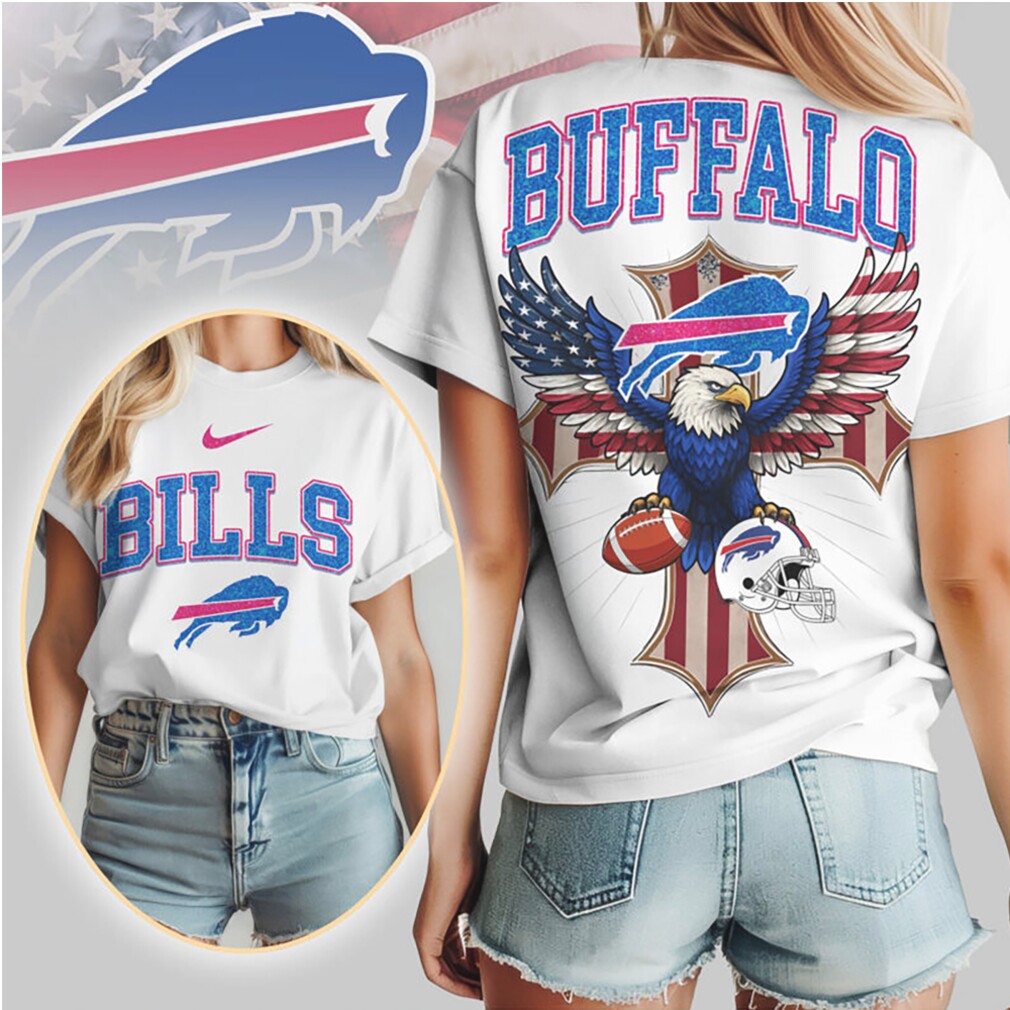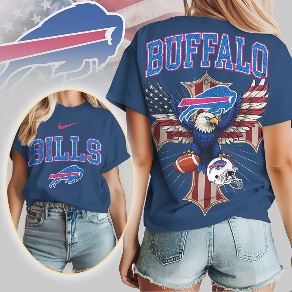 Buffalo Bills Patriotic Eagle American Flag Cross NFL Football T Shirt