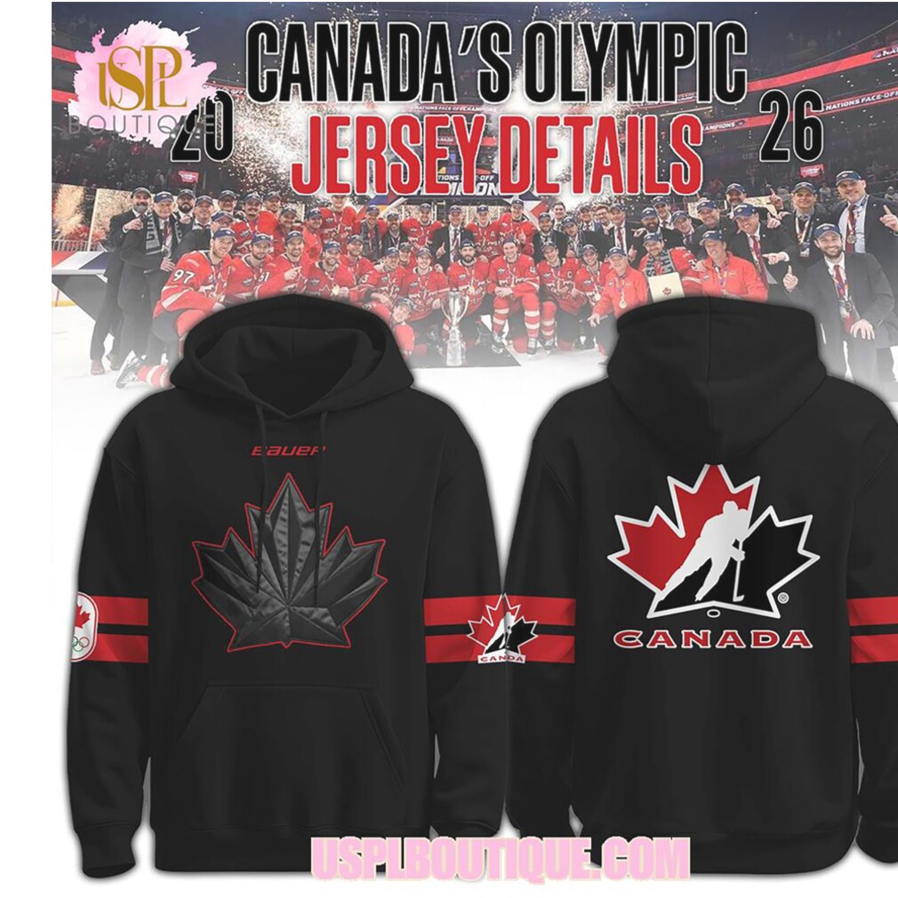 Canada Olympic Hockey Jersey Details 2026 Winter Games Black Maple Leaf Graphic Hoodie