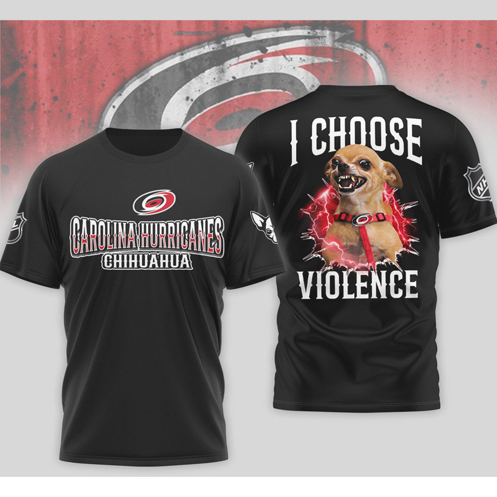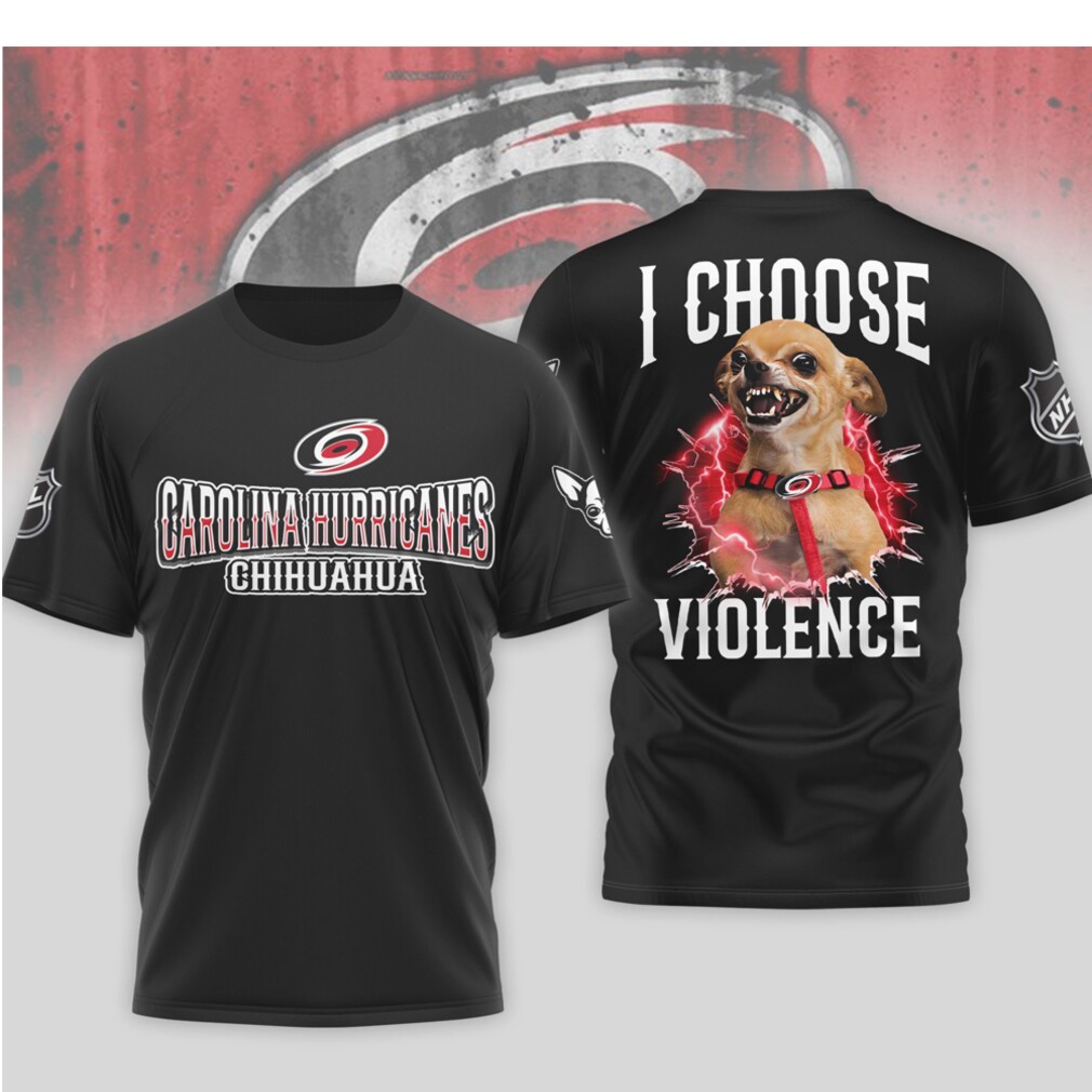 ▶️ About Carolina Hurricanes I Choose Violence Funny Chihuahua Dog Angry Hockey Fan Shirt – 3D T-Shirt