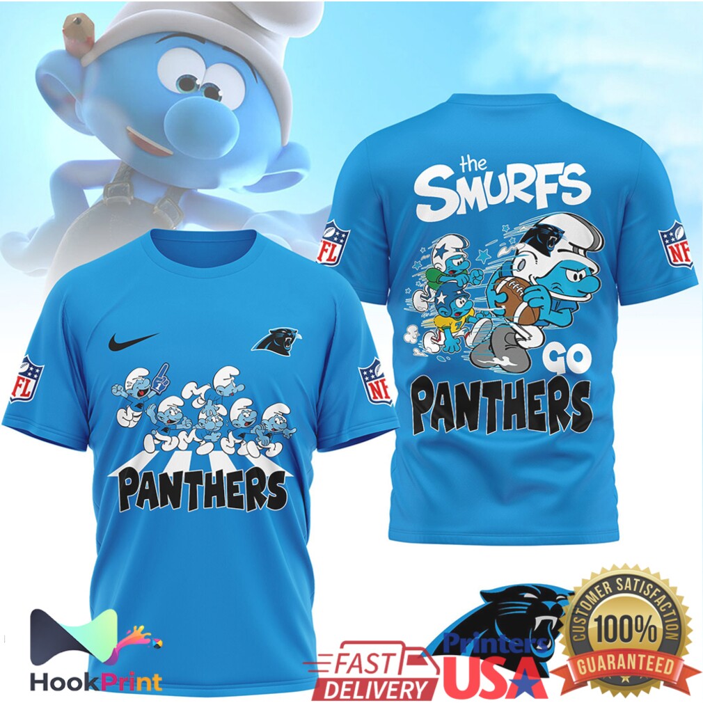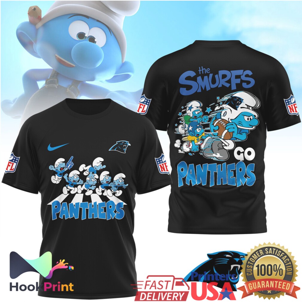 ▶️ About Carolina Panthers x The Smurfs Go Panthers Abbey Road NFL T Shirt – 3D T-Shirt