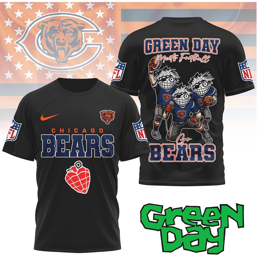 ()▶️ About Chicago Bears “Green Day Meets Football” Cartoon Graphic Fan Tee – 3D T-Shirt