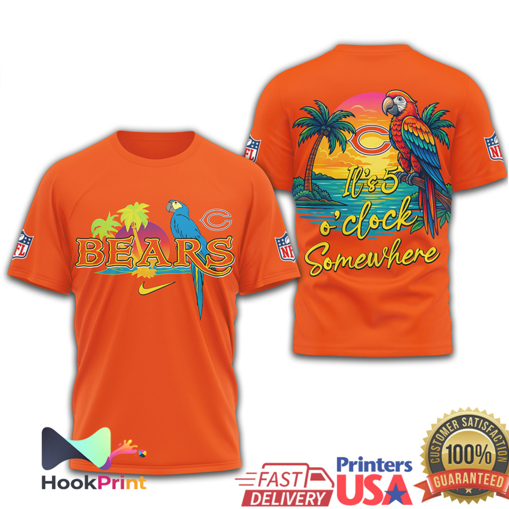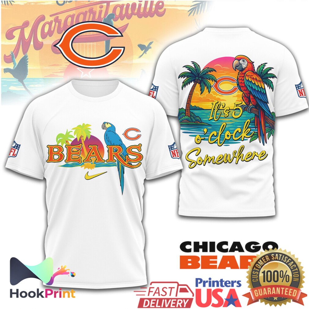 ▶️ About Chicago Bears It's 5 O'Clock Somewhere Parrot Tropical NFL T Shirt – 3D T-Shirt