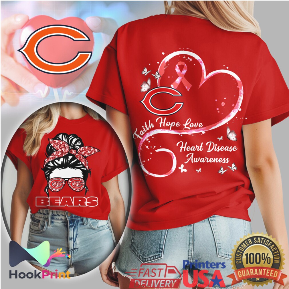 ▶️ About Chicago Bears Messy Bun Heart Disease Awareness Faith Hope Love T Shirt – 3D T-Shirt