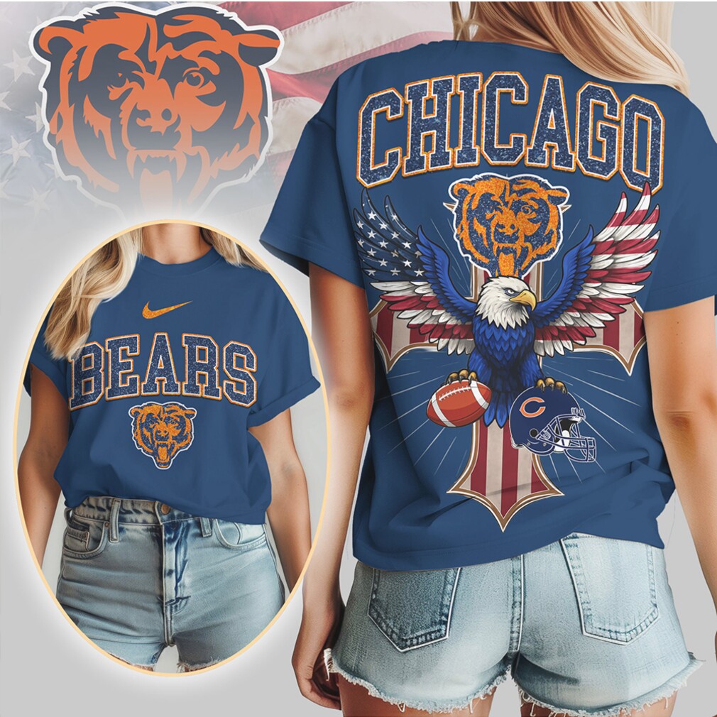 Chicago Bears Patriotic Eagle American Flag Cross NFL Football T Shirt