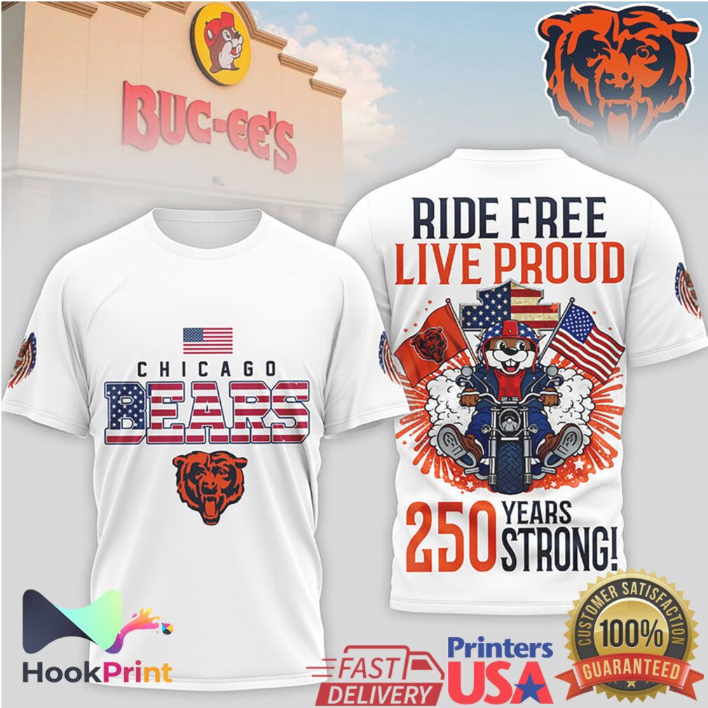 ▶️ About Chicago Bears Ride Free Live Proud 250 Years Strong Buc ee's Beaver Motorcycle T Shirt – 3D T-Shirt