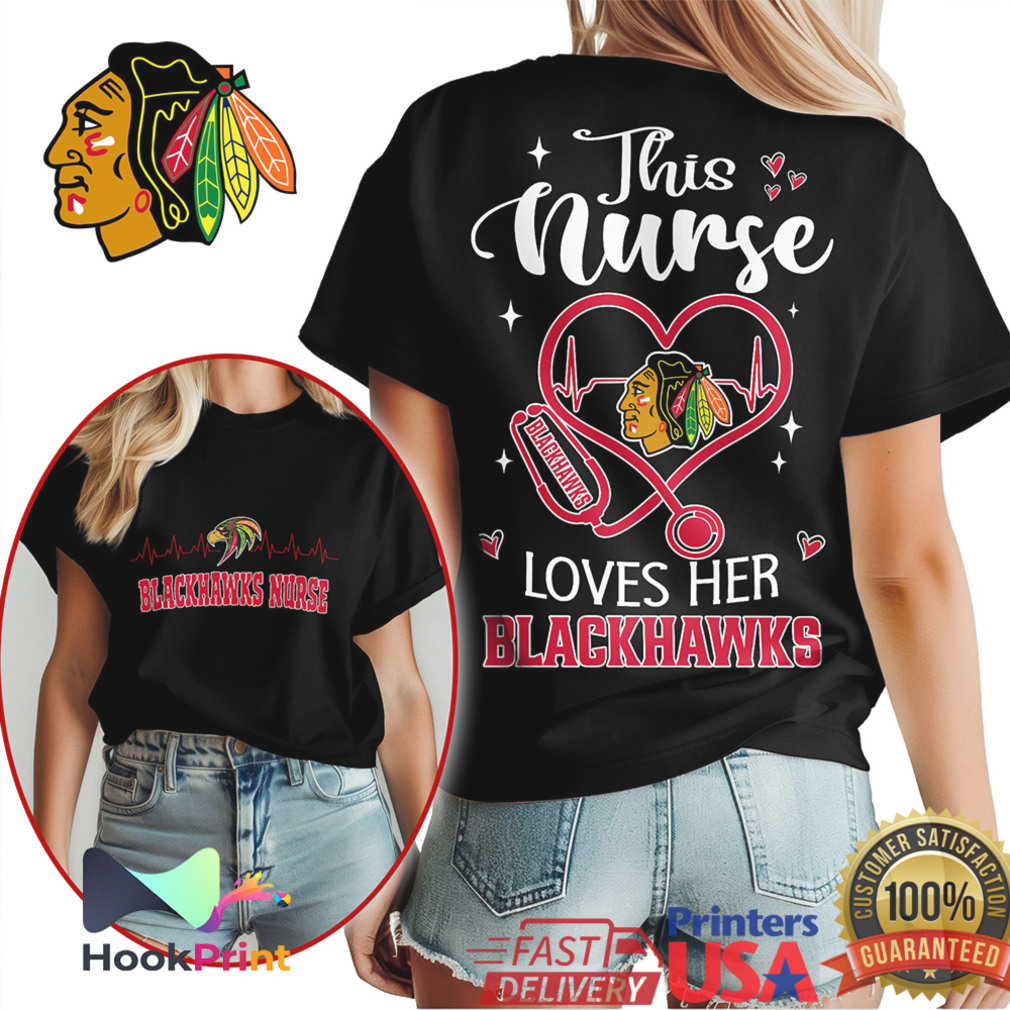 ▶️ About Chicago Blackhawks Nurse This Nurse Loves Her Blackhawks NHL Fan Gift T Shirt – 3D T-Shirt