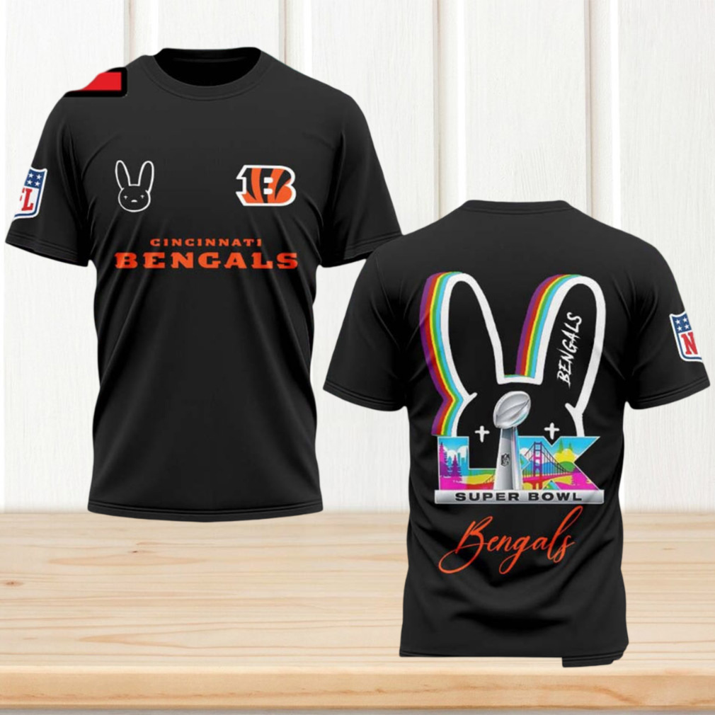 ()▶️ About Cincinnati Bengals Bad Bunny Super Bowl LX NFL Football Fan Graphic T Shirt – 3D T-Shirt