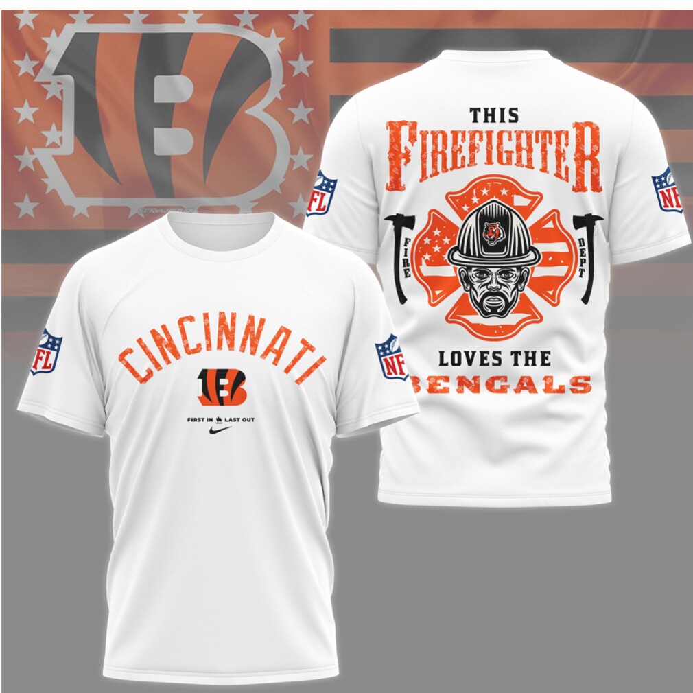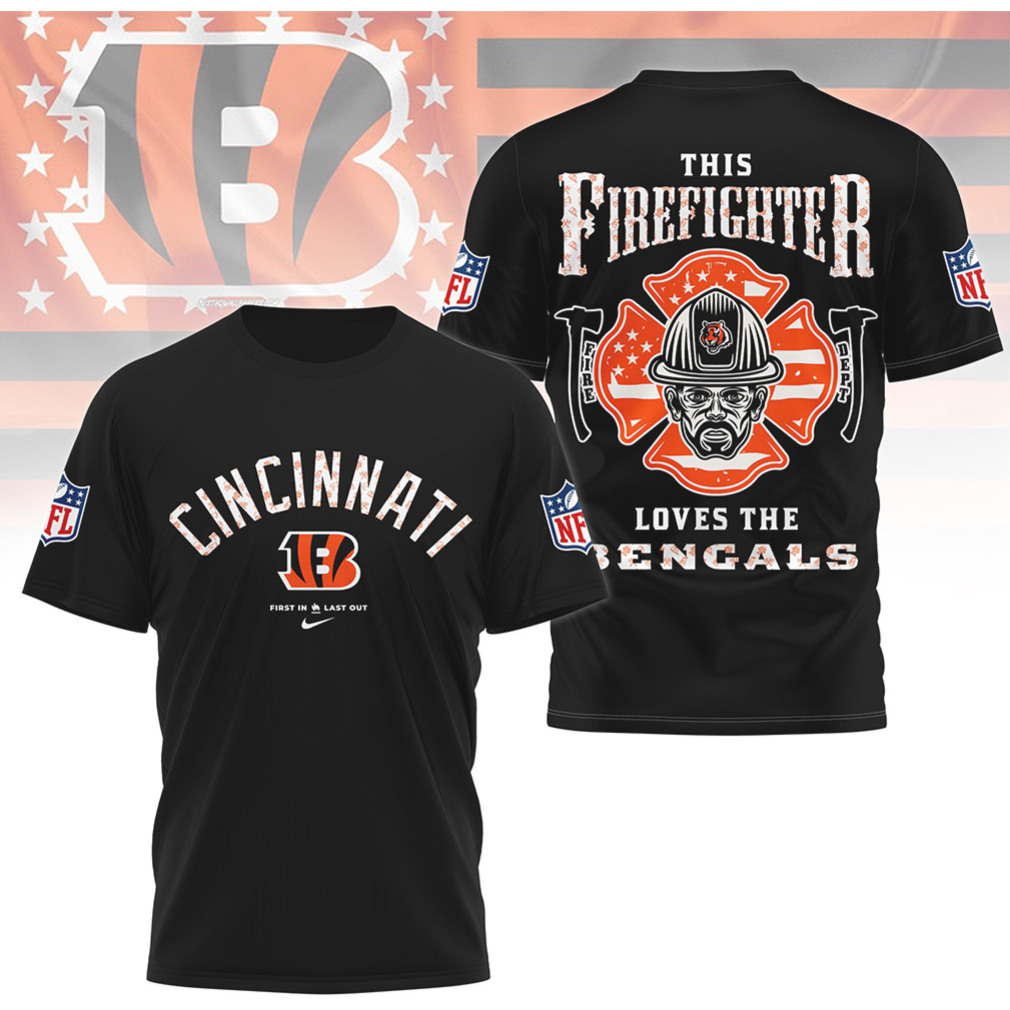 ▶️ About Cincinnati Bengals Firefighter Graphic NFL Fire Dept Design Men's Orange Black T Shirt – 3D T-Shirt
