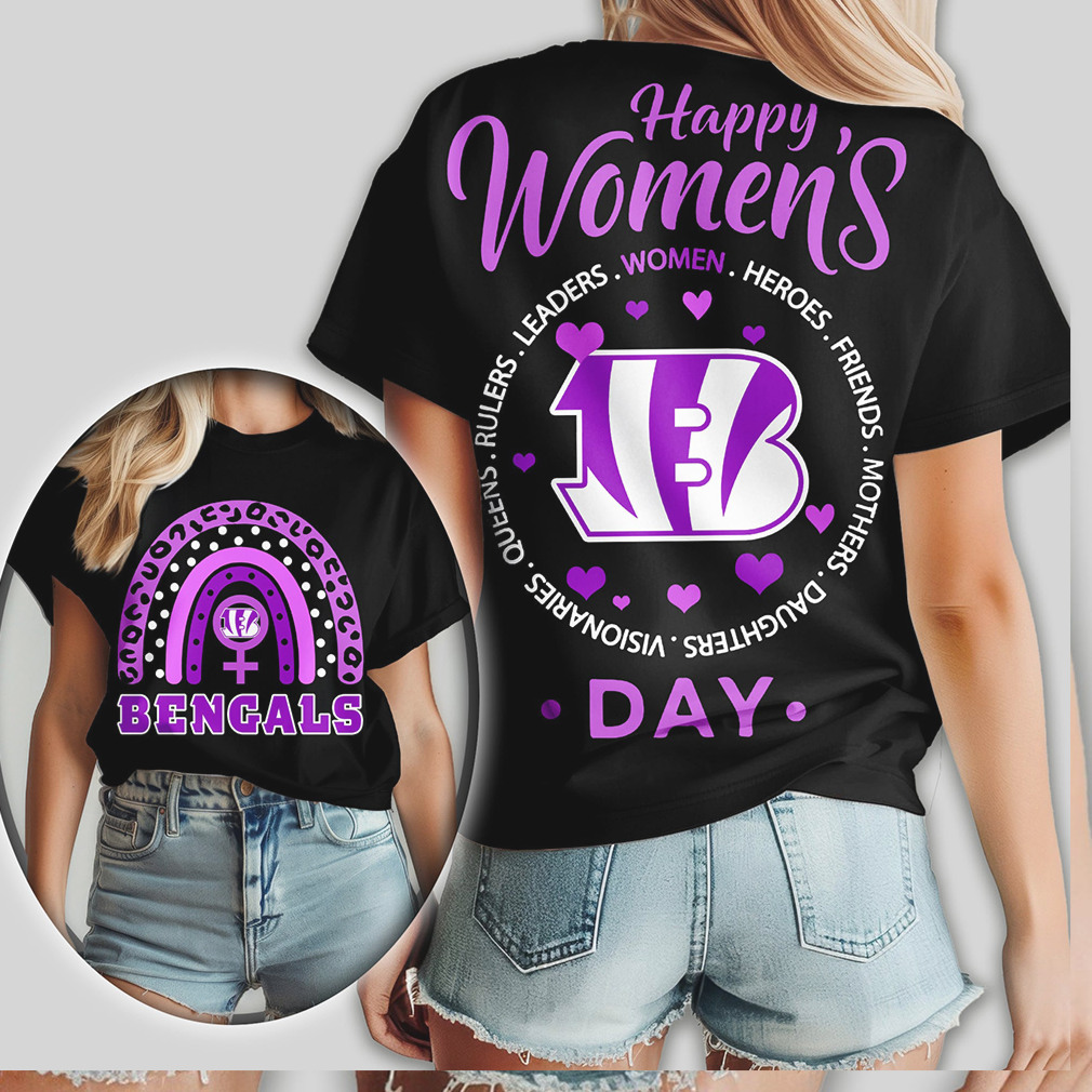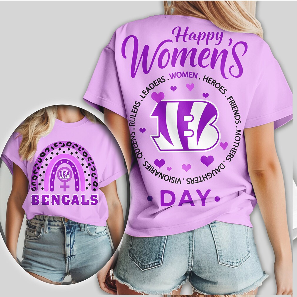 ▶️ About Cincinnati Bengals Happy Womens Day NFL Purple Leopard Rainbow Shirt – 3D T-Shirt