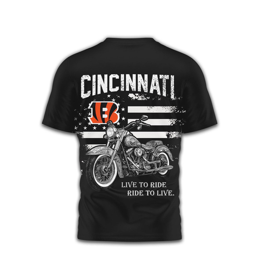 ▶️ About Cincinnati Bengals Motorcycle Flag Design Live to Ride Shirt – 3D T-Shirt