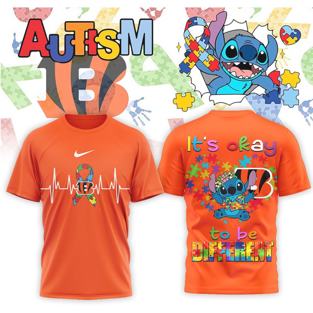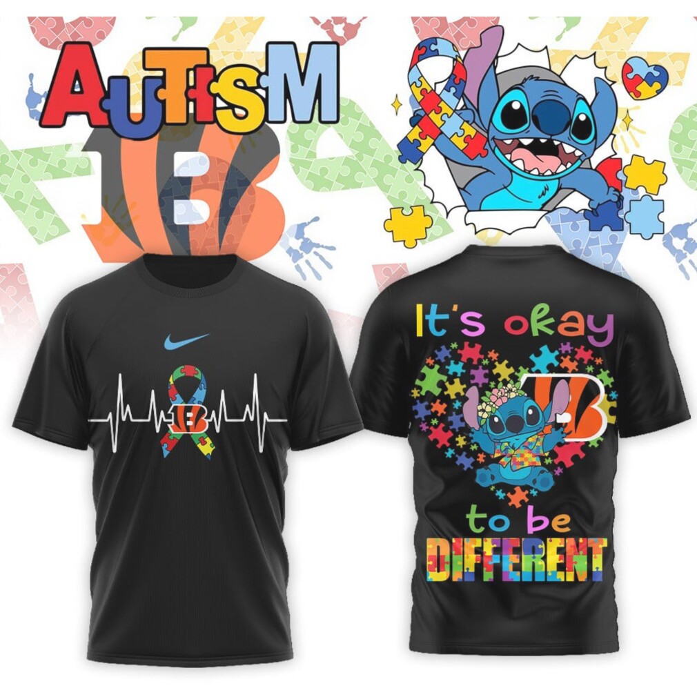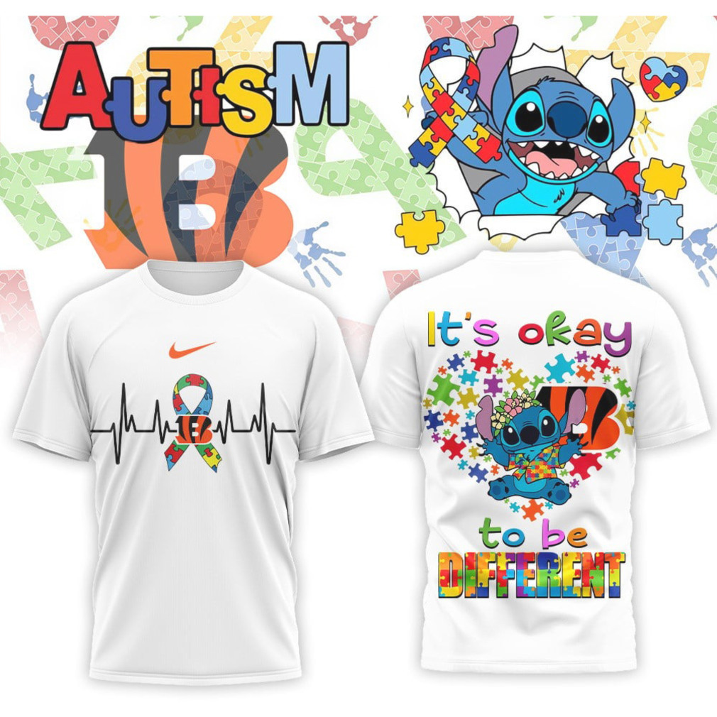 ▶️ About Cincinnati Bengals Stitch Autism Awareness Puzzle Ribbon Heartbeat Graphic Sports Fan Shirt – 3D T-Shirt