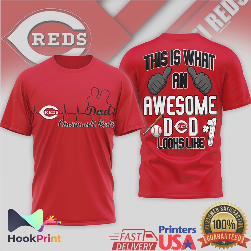 ▶️ About Cincinnati Reds Awesome Dad 1 Heartbeat Baseball Fan T Shirt – 3D T-Shirt