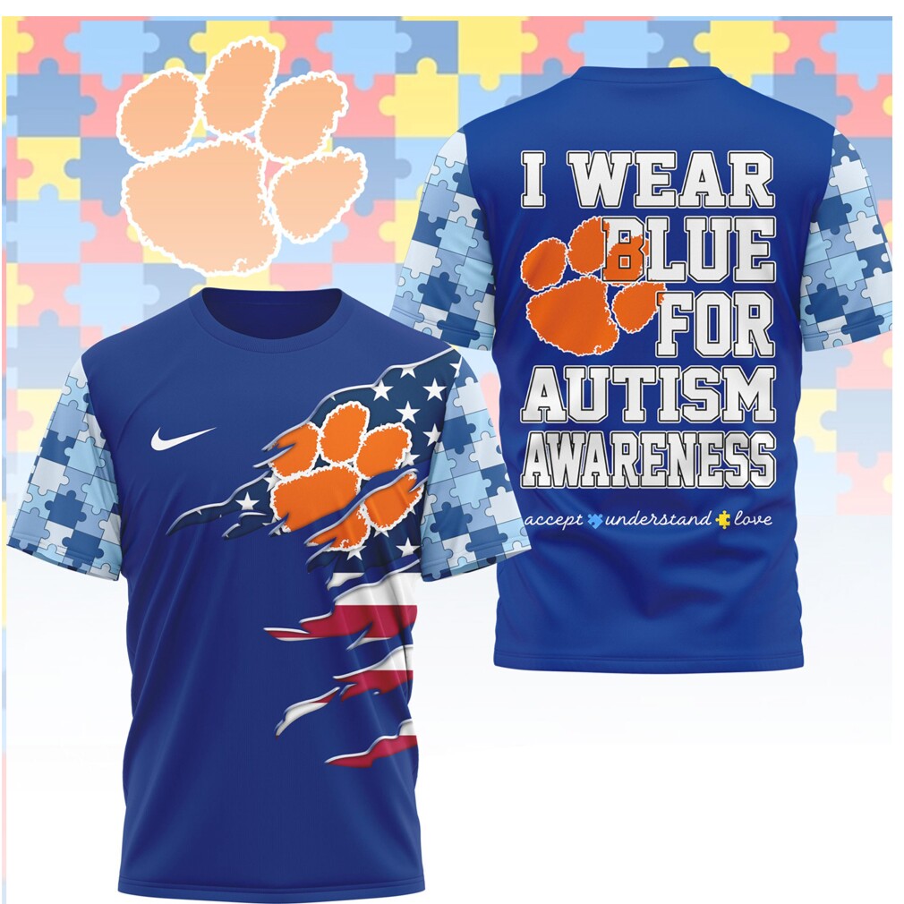 ▶️ About Clemson Tigers I Wear Blue for Autism Awareness T Shirt – 3D T-Shirt
