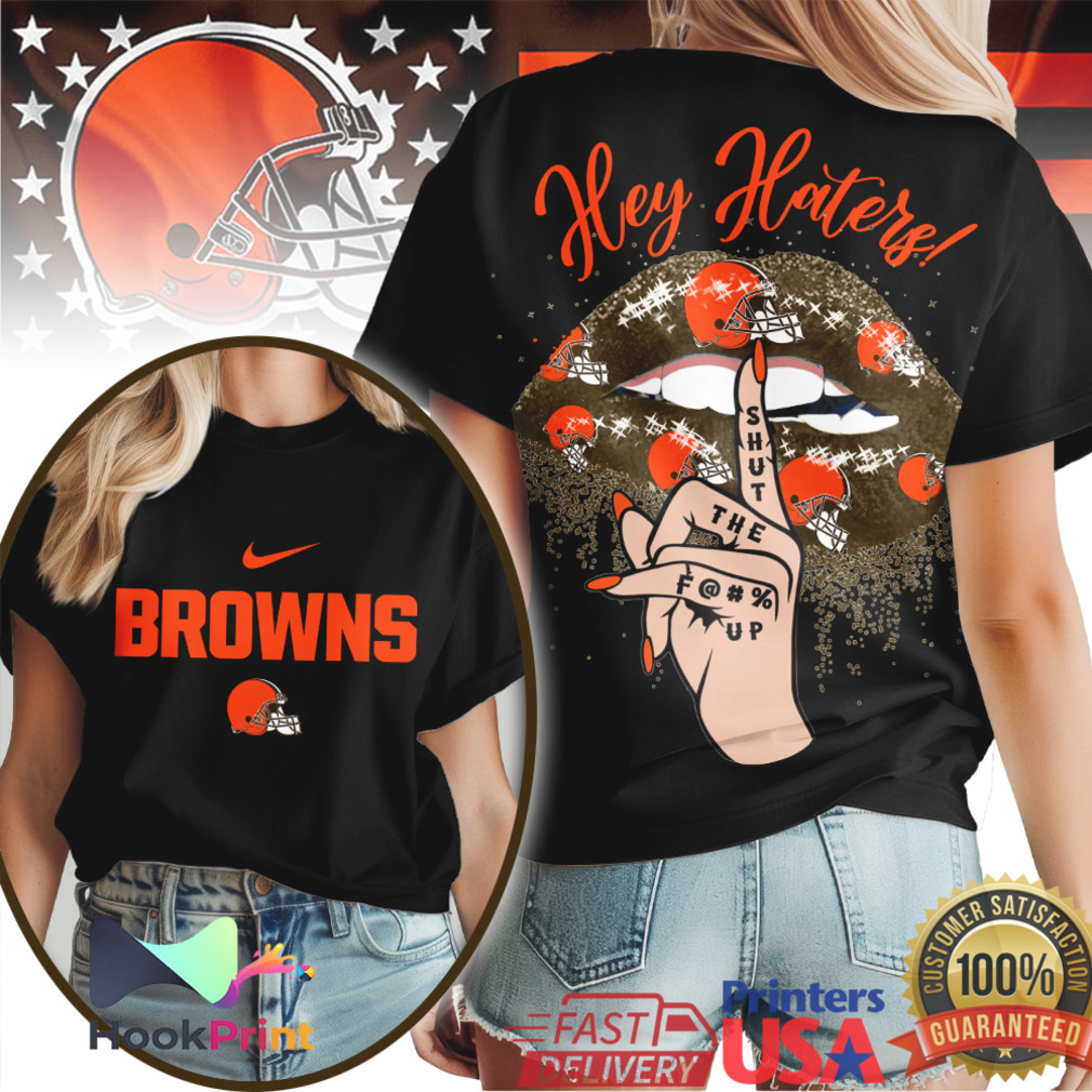 ▶️ About Cleveland Browns Hey Haters Shut The F Up Lips Graphic T Shirt – 3D T-Shirt