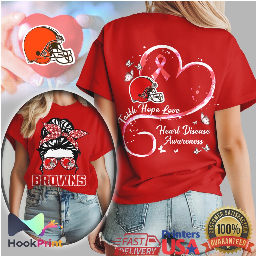 ▶️ About Cleveland Browns Messy Bun Heart Disease Awareness Faith Hope Love Red T Shirt – 3D T-Shirt