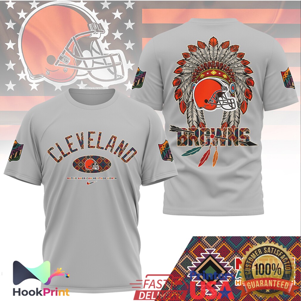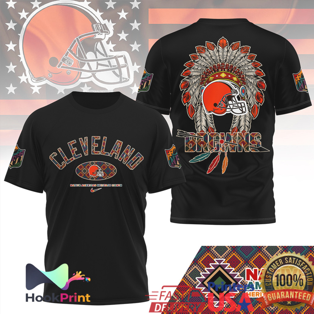 ▶️ About Cleveland Browns NFL Native American Heritage Month Headdress T Shirt – 3D T-Shirt