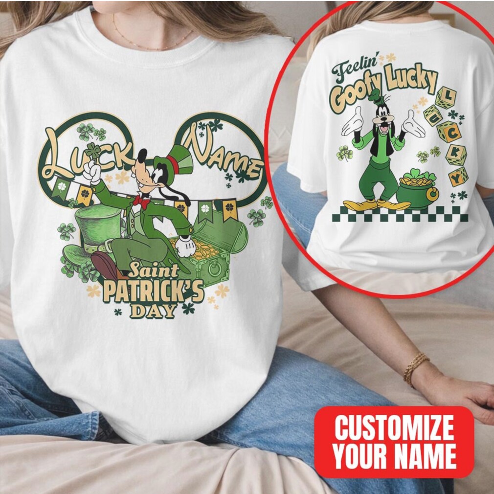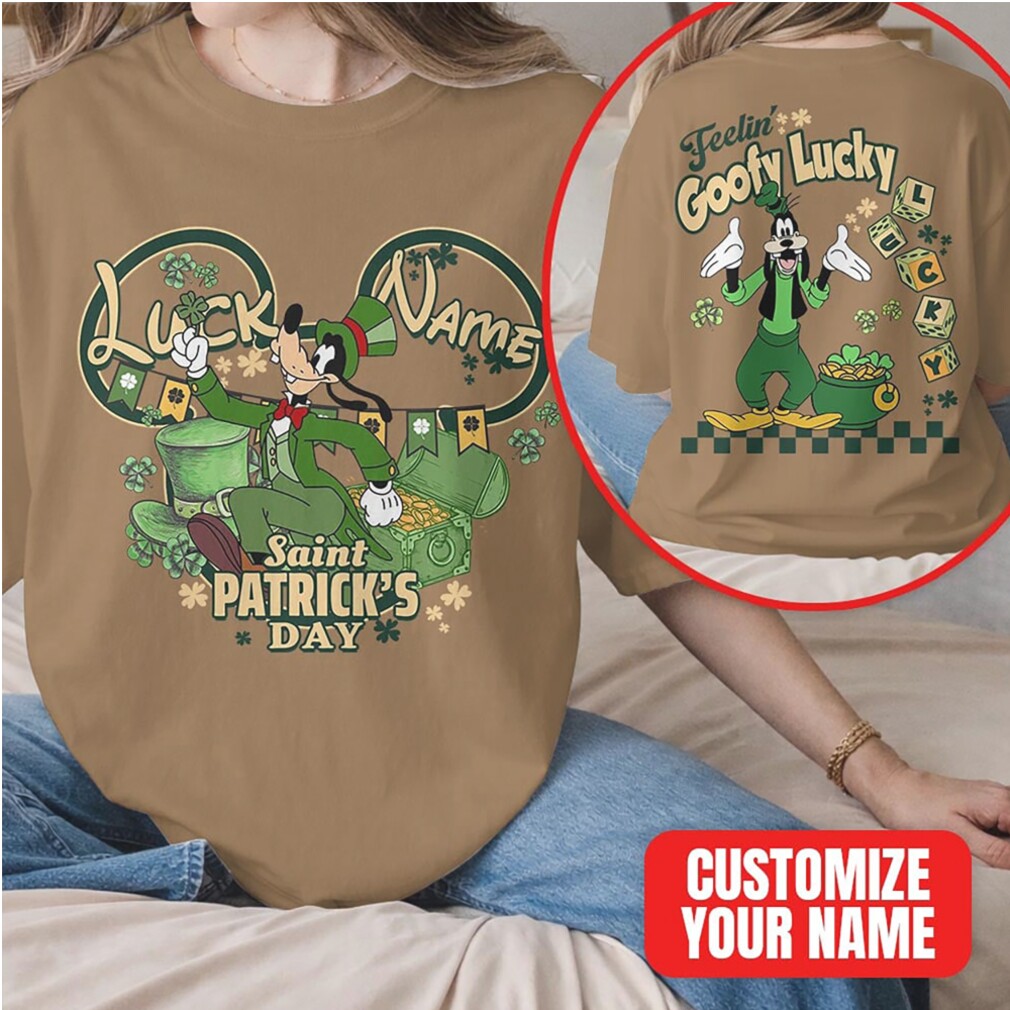 ()Custom Name Goofy Lucky Saint Patrick’s Day Disney Character Festive Green Clover T Shirt, V-neck, Sweater Hoodie and Long Sleeve tee