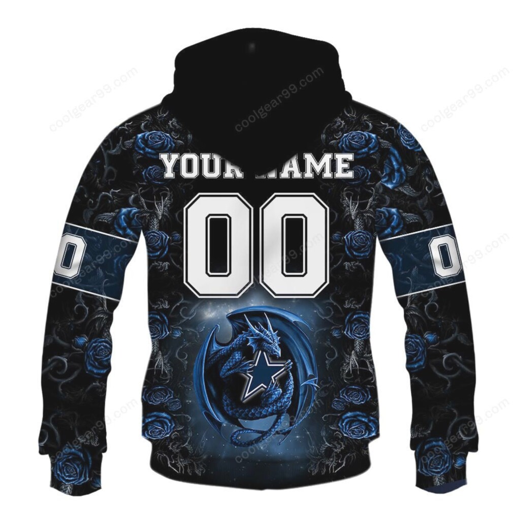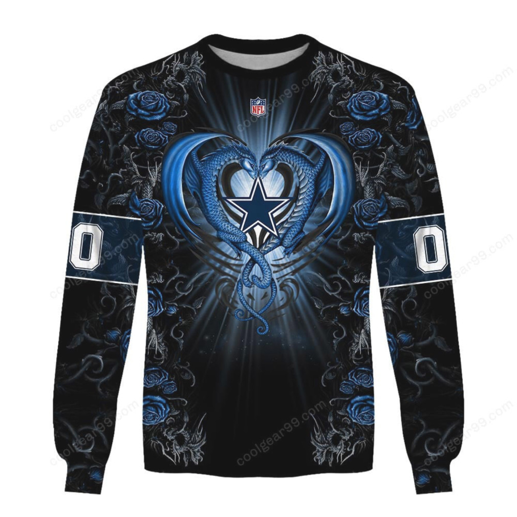 ▶️ About Dallas Cowboys Blue Rose Dragon Long Sleeve T Shirt – 3D T-Shirt