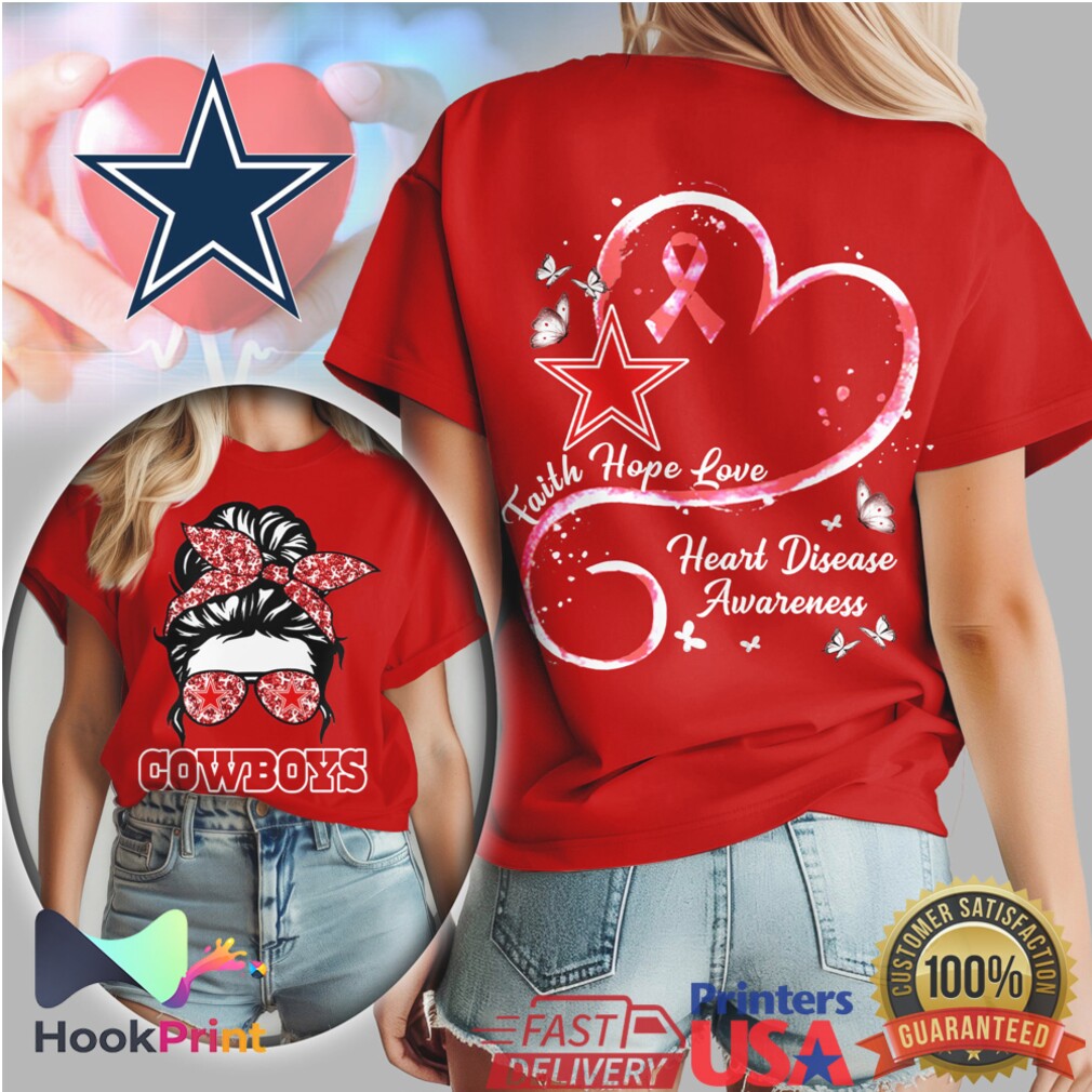 Dallas Cowboys Messy Bun Heart Disease Awareness Faith Hope Love T Shirt