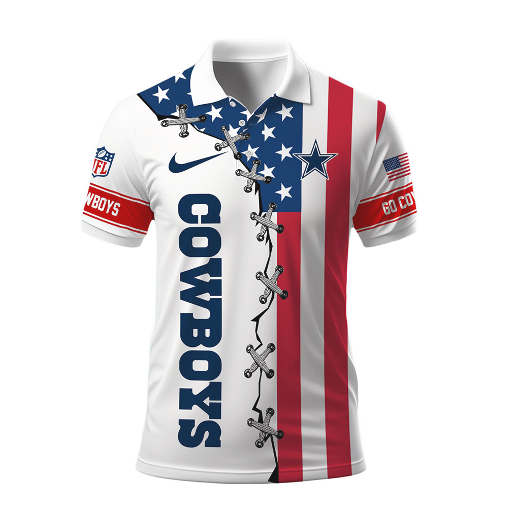 ▶️ About Dallas Cowboys NFL Patriotic Star Stripes Lace Up Polo – 3D T-Shirt