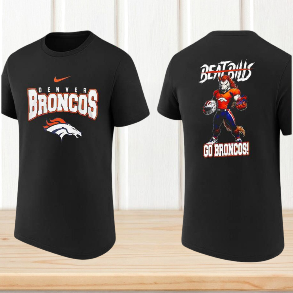 ()▶️ About Denver Broncos Beat Bills Mascot Football Game Day Fan Apparel T Shirt – 3D T-Shirt