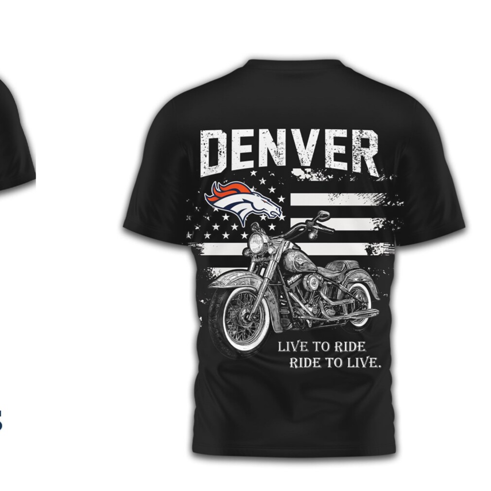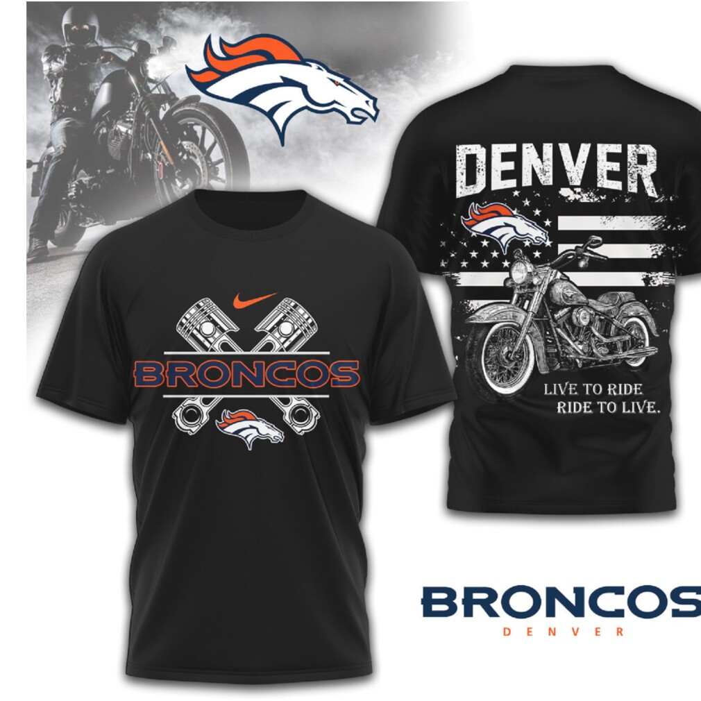 ▶️ About Denver Broncos Biker Live To Ride Motorbike & Piston Graphic Orange Blue T Shirt – 3D T-Shirt