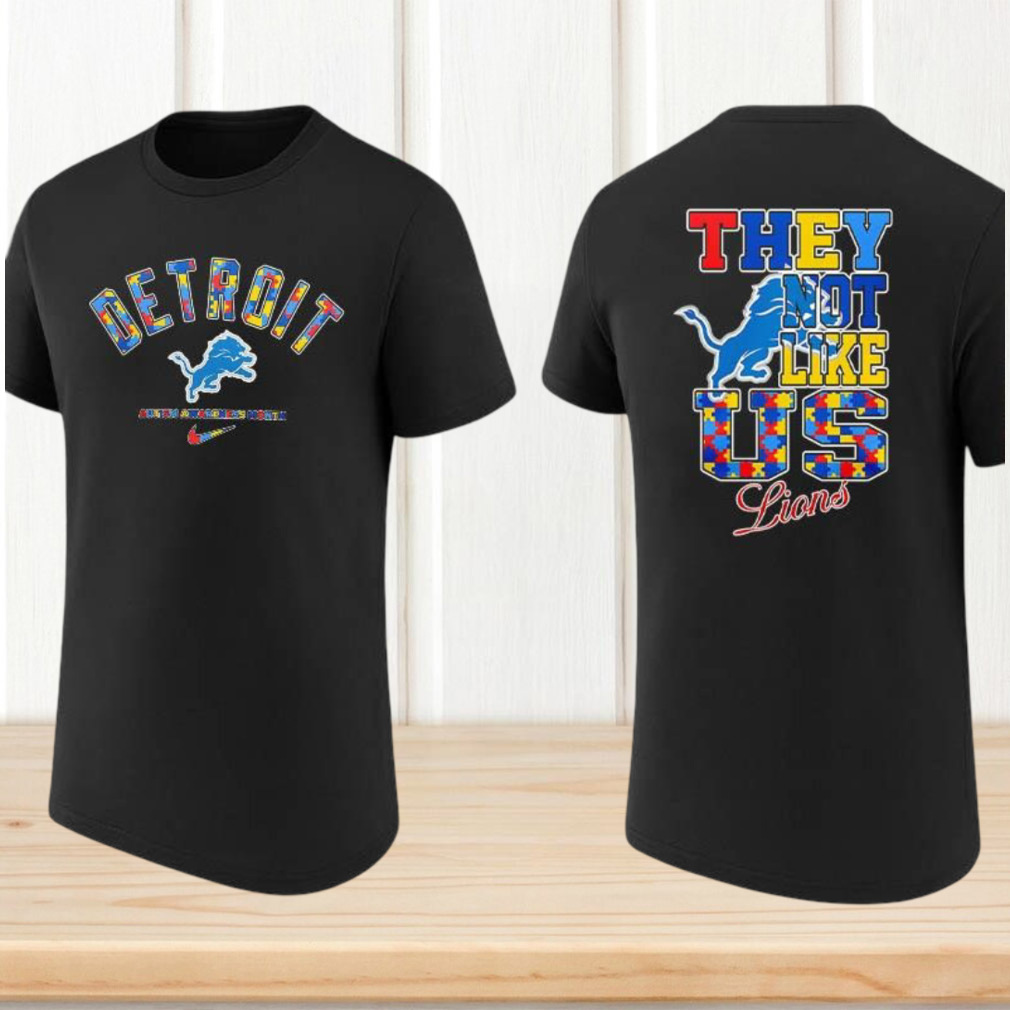 Detroit Lions Autism Awareness Month They Not Like Us Puzzle T Shirt