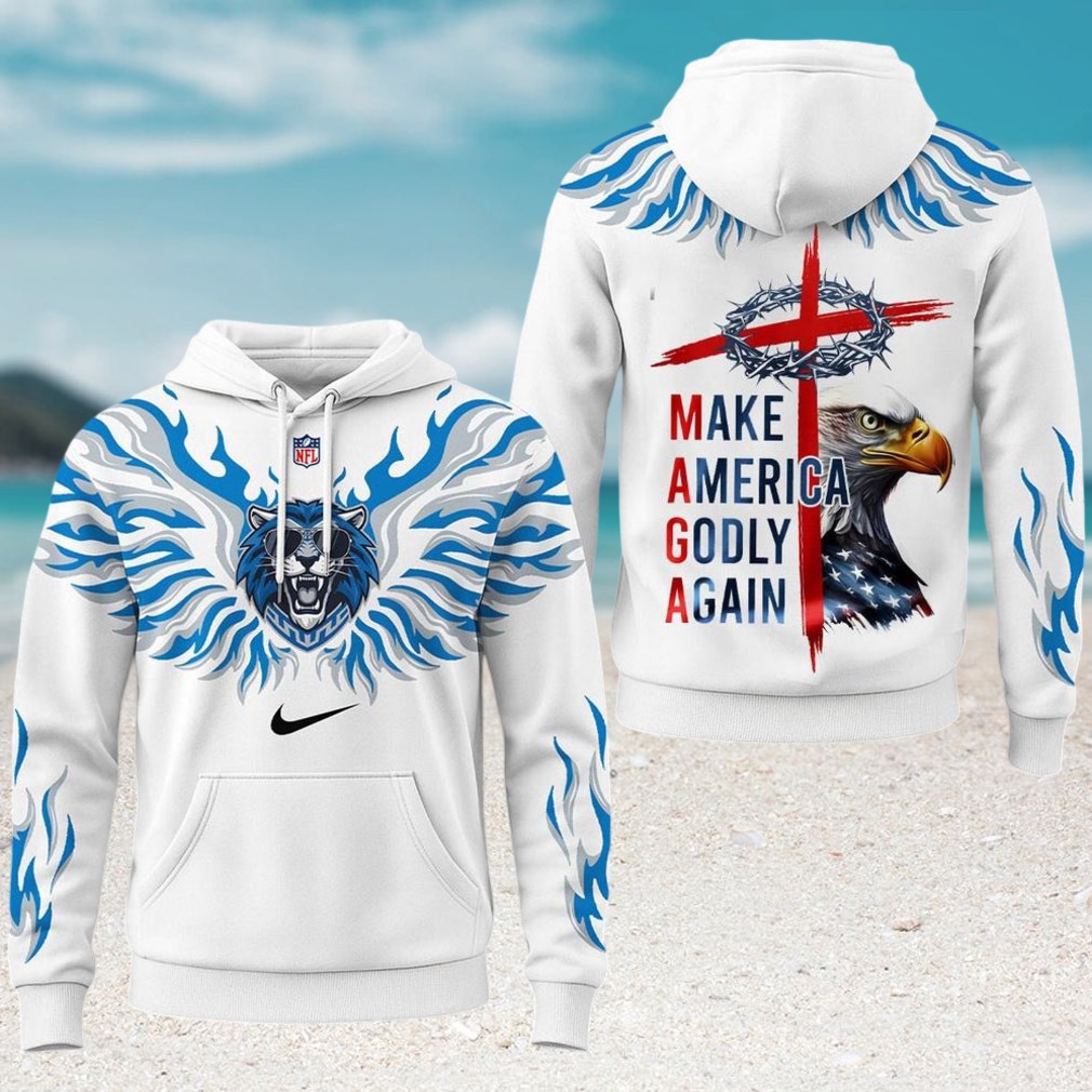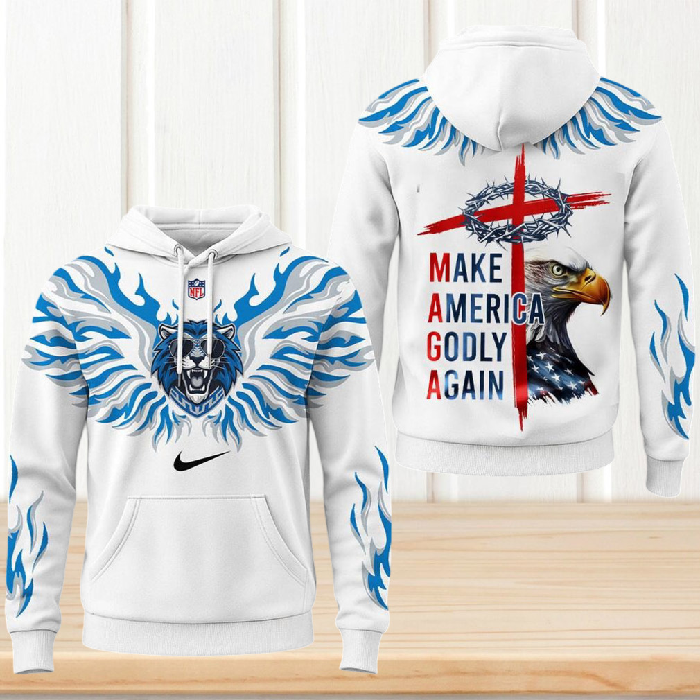 ()Detroit Lions MAGA Make America Godly Again Blue Flame Christian Patriot Hoodie, V-neck, Sweater Hoodie and Long Sleeve tee