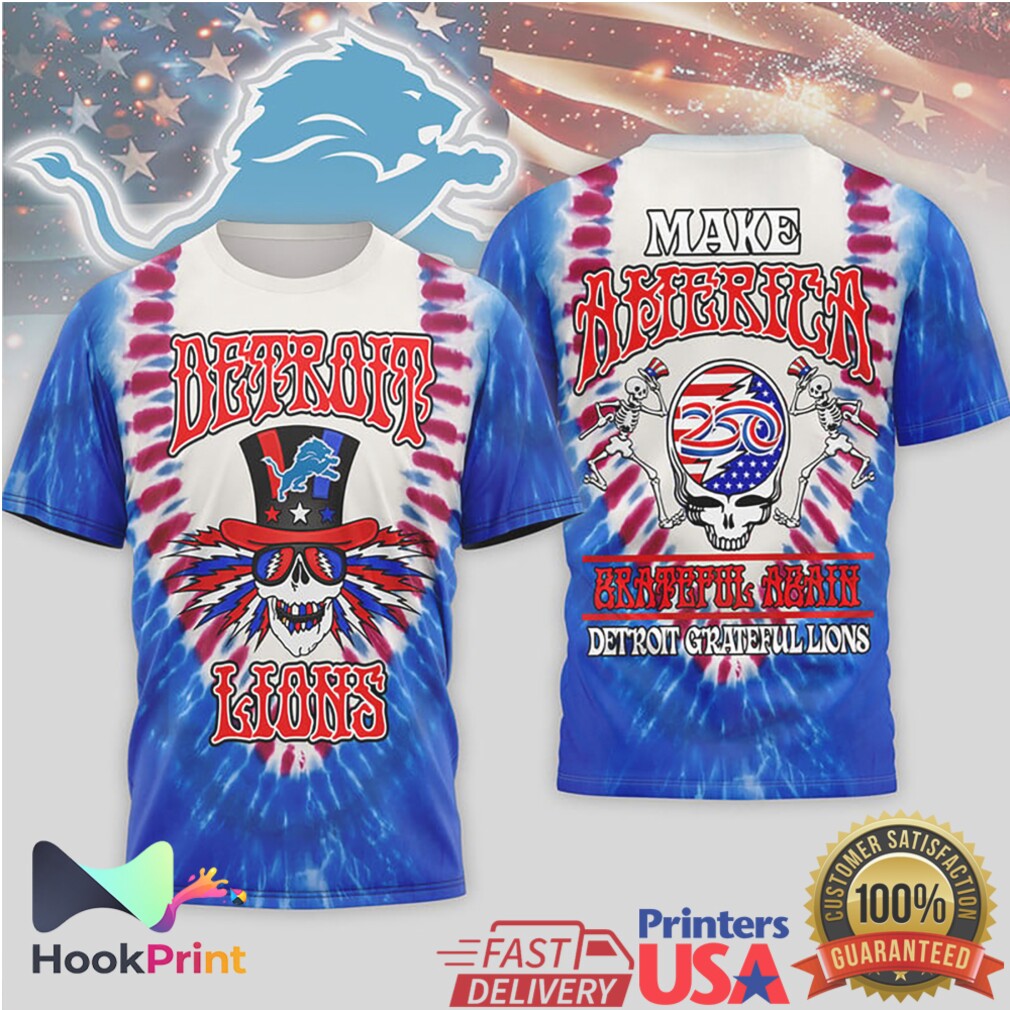 Detroit Lions Make America Grateful Again Patriotic Skull Tie Dye T Shirt