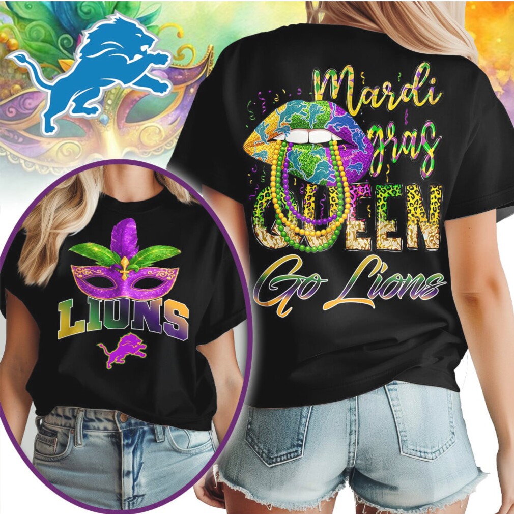 ()▶️ About Detroit Lions Mardi Gras Queen Festive Football Fan Game Day T Shirt – 3D T-Shirt