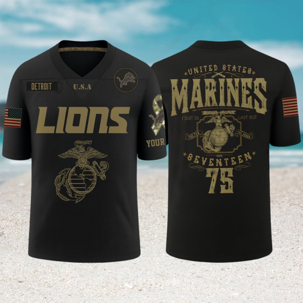 ▶️ About Detroit Lions x U.S Marine Corps Dark Gameday Jersey – 3D T-Shirt