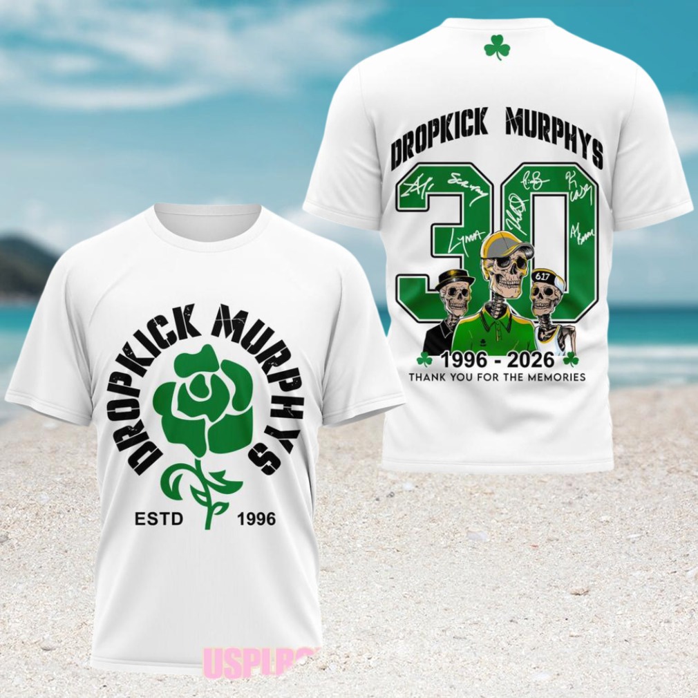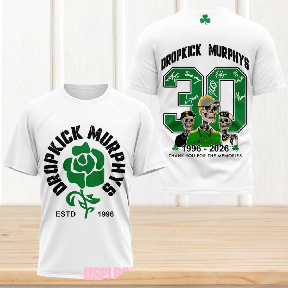 ()▶️ About Dropkick Murphys Estd 1996 30th Anniversary Limited Edition White Anniversary Commemorative Graphic T Shirt – 3D T-Shirt